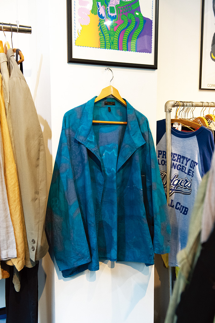 オランダのテキスタイルブランド〈プアージャ〉のジャケット。奥ゆかしい柄はプリントかと思いきや、絞り染めによるものだとか。¥25,300/アメリカものにはない鮮やかさ。