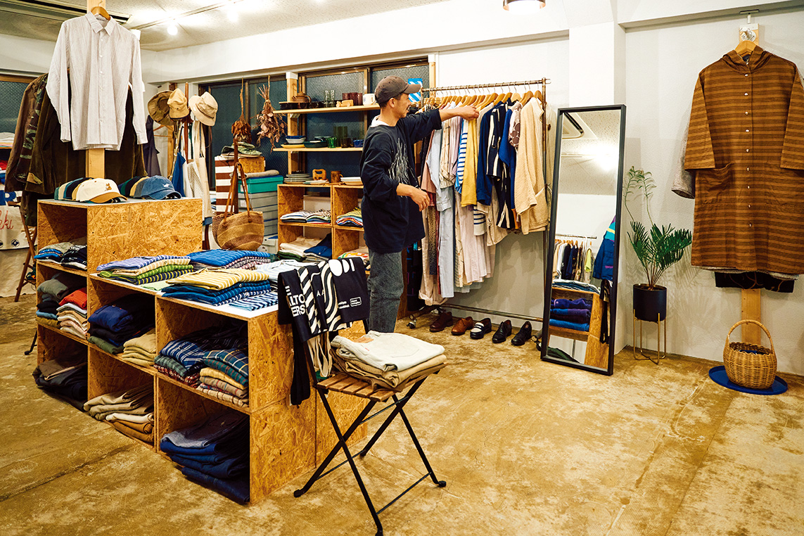「こうなるまでの経年と時代背景を感じるだけじゃなく袖を通せるボロって、もはや身に纏えるアートですよね」とオーナー池田謙太さん。海外でも“BORO”で伝わるくらい盛り上がっている(P46参照)。2月にオープンしたばかりの『オールアイニード』はそんなボロが目玉。安全ピンで留めた〈カーハート〉や、もはや裏地が表に出てきちゃってるジャケット、元の色がわからないくらい変色したジップフーディーなど、加工やデザインじゃない、時を経たすごみを体感してみないか。