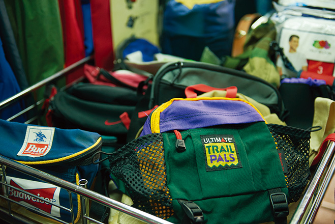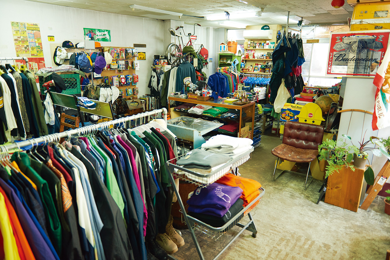 ナイスグラフィックなスケートTシャツやサイクリングシャツといった古着をはじめ、フィギュアにフィルムカメラ、はたまたラジコンまで。アメリカの少年のおもちゃ箱をひっくり返したような、賑やかさがこの店の真骨頂。「カリフォルニアに住んでいた3年間で集めたアイテムを中心に並べてます」と語るのは、店主のケイタさん。箱の中にパッカブル仕様のウェアがどっさり入っていたり、ラックの下にはまだまだTシャツの山があったり、遊び心満点のキーホルダーなどが所狭しと並んだり、どこを見ても飽きがこない。というか、見終われる気がしない……。