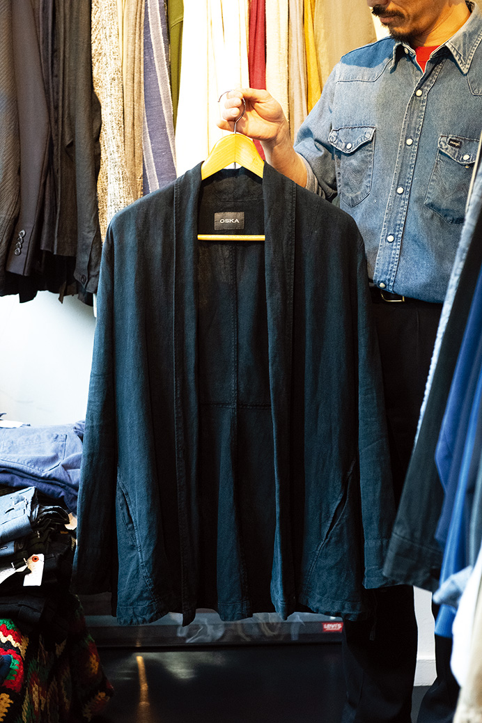 ドイツの〈オスカ〉の’90年代のジャケットは、日本の作務衣がモチーフ。素材はこのブランドの真骨頂でもあるリネン。¥22,000/日本味を感じるドイツもの。