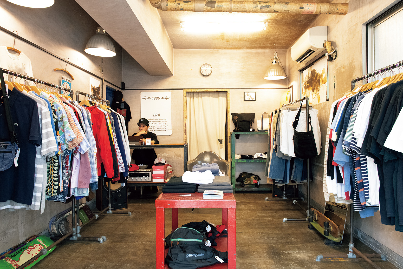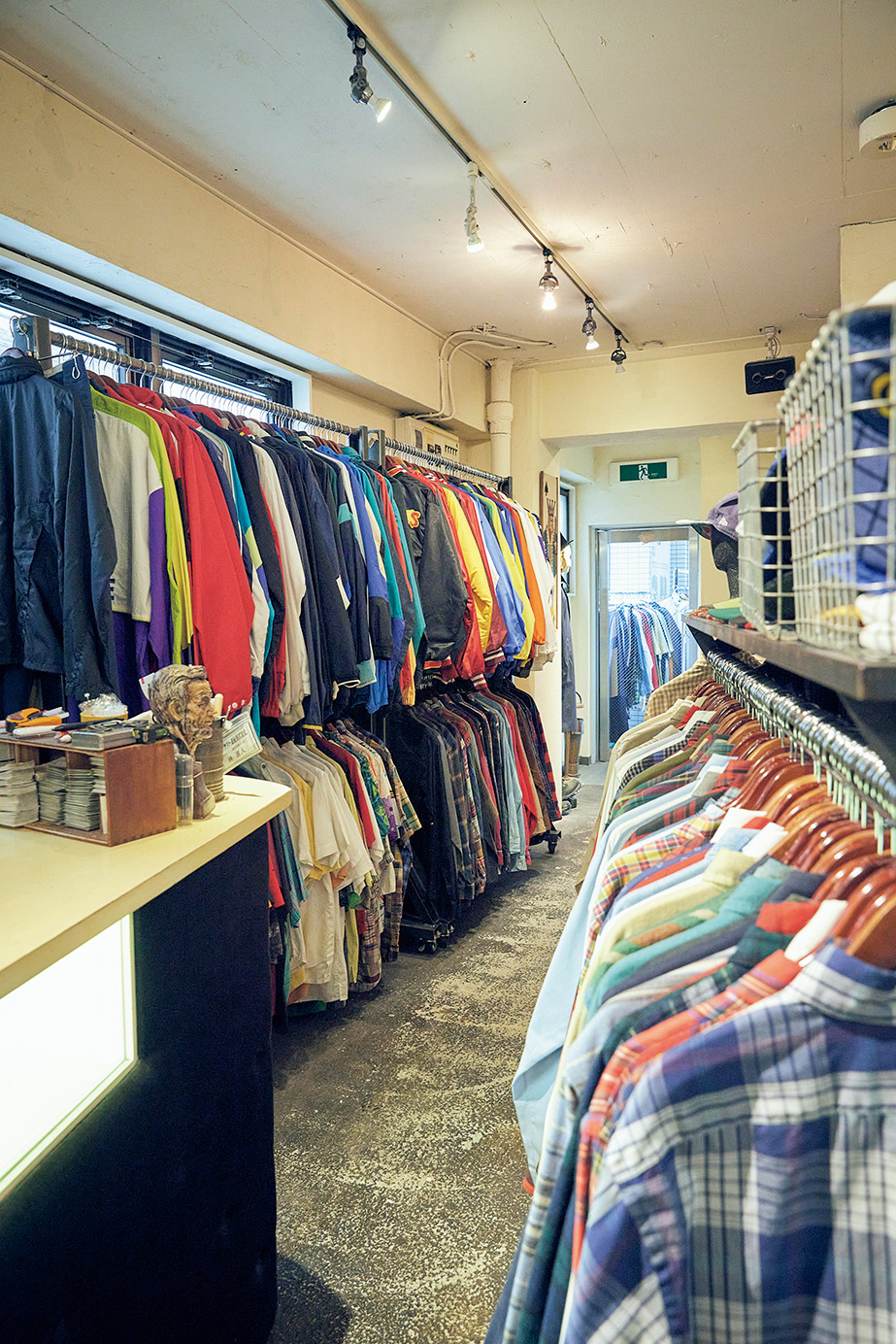 レギュラー古着って聞くとポップなオールド〈ギャップ〉とかユースなイメージ。「うちは大人も着れるものを」と『ペルアア』オーナーの野田将太さんがアメリカで買い付ける商品は王道ってよりは少し一癖。テックジャケットに見えてシルク素材、〈リーバイス〉のデニムにはリペア痕など普通だけど気の利いたものが目白押し。閉店時間も遅いので三茶で一杯ひっかけてから、なんてのも大人の古着の買い方。