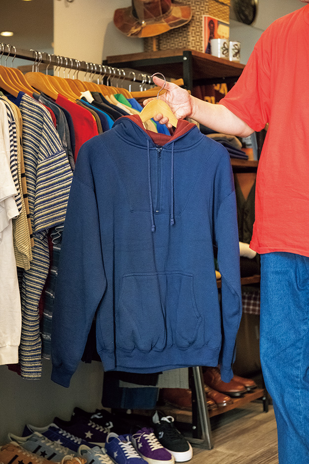 可愛いヴィンテージ品に見惚れちゃいがちだけど、レギュラーものも粒揃い。玉数が減ってきていると聞く’90年代のボーダーTのような古着好きのツボを押さえる良品がありつつも、裏地がサーマルで着心地も抜群な’90年代の〈マックレガー〉のジップパーカみたいな気の利いた服もある。見た目麗しく、着て楽しい、そしてグッドプライスと、3拍子揃ったこれぞグッドレギュラーと言わんばかりの至高のラインナップ!