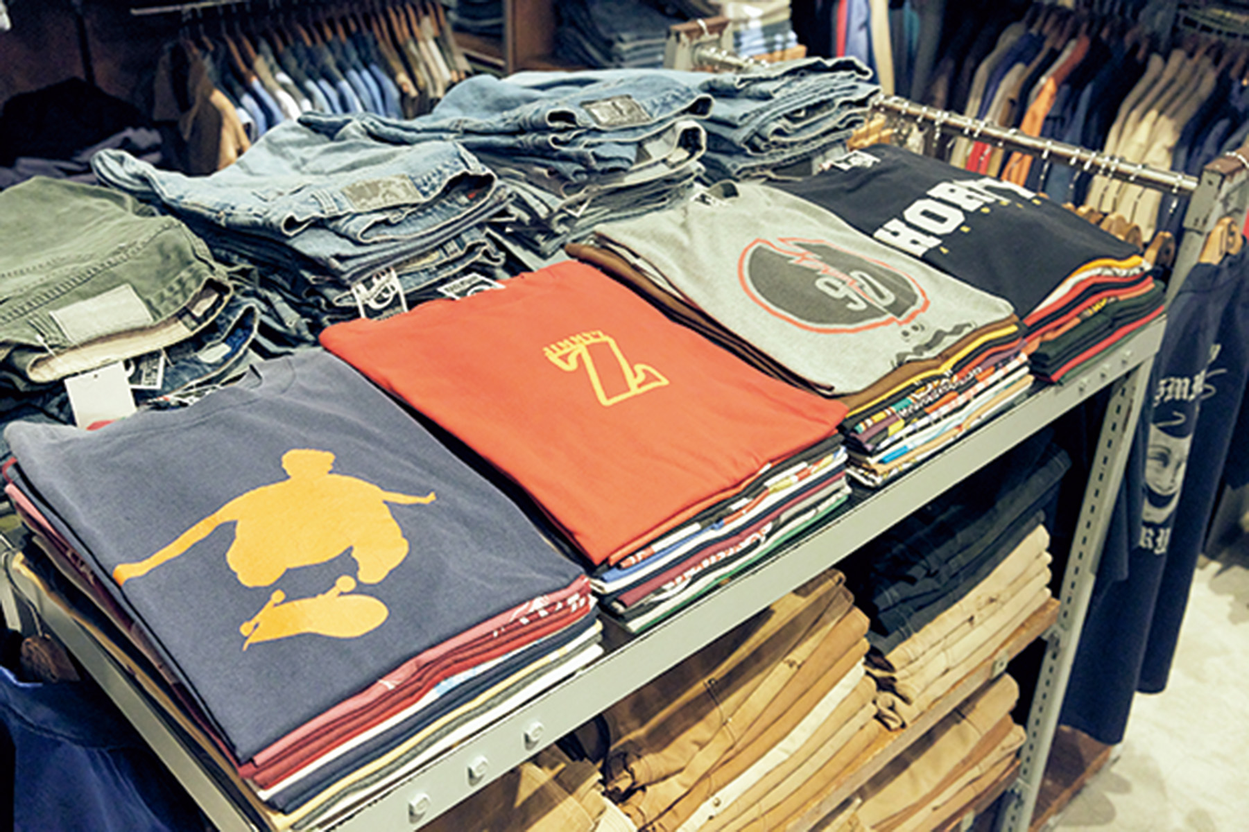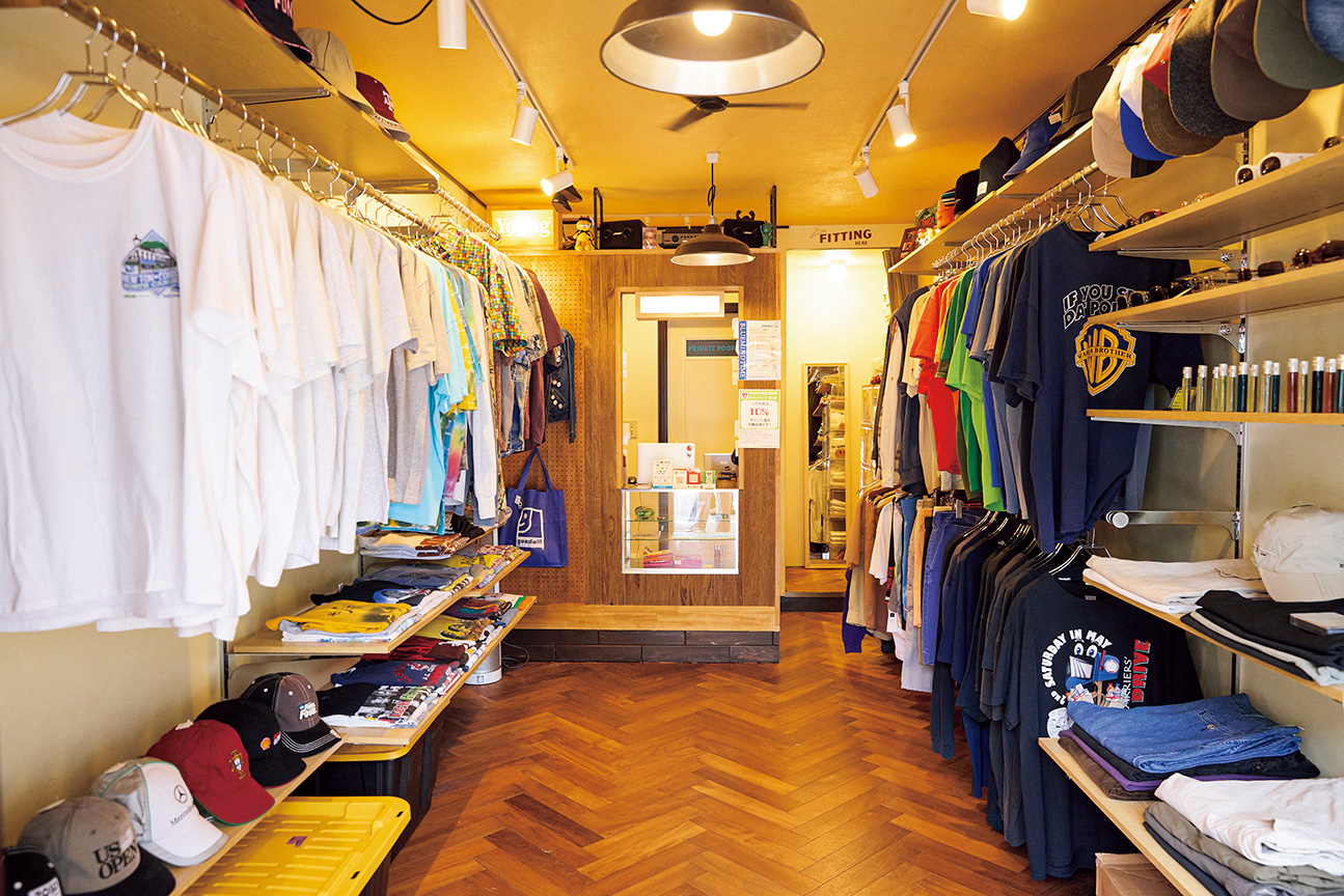 Tシャツ(¥4,290~)に〈ラコステ〉のポロシャツ(¥5,290~)、〈コンバース〉のスニーカー(¥9,790~)。値札を見て、思わず「え、セール中?」と疑ってしまうけれど、これがこの店の通常営業。「年代にこだわらず、いいモノを安く」をモットーに、オーナー自らが仕入れているから、コンディションもデザインも申し分なし。それでいて、このプライス。となれば、動きが相当早い。手に入れるなら、まさしくハリーアップ!
