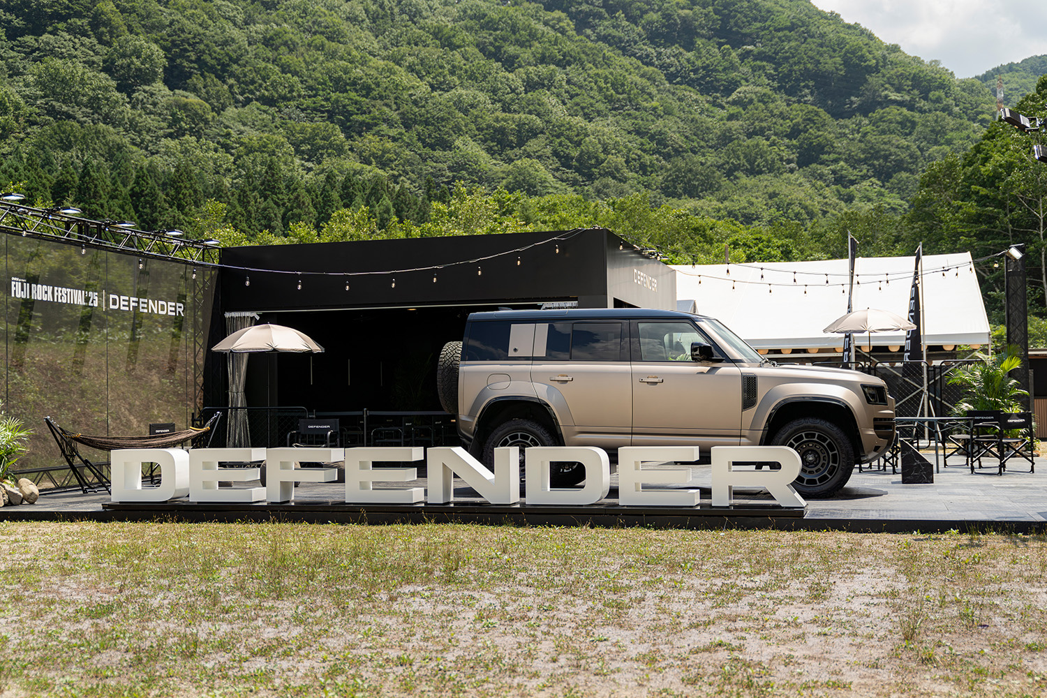 なんでもディフェンダーは音楽カルチャーに注力してるのだとか。最近では、今噂のOasisの再結成ワールドツアーや、ご存じの方も多いであろう英国で行われる世界最大規模の野外フェス・グラストンベリー・フェスティバルのオフィシャル車両パートナーに就任するなど多方面でミュージシャンからミュージックラバーたちまでをサポートしているのです。正直、フジロックに来るまでは知らなかった!