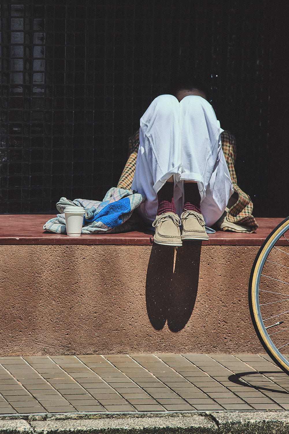 さてと、コーヒーも美味しかったし、「パサデナ」もずいぶん足に馴染んできた。なんだか今日は、いい1日を送れそうな予感。行きつけのカフェ『コーヒーカウンティ』を出て、駅に向かおうと歩き出したら、この間の彼女がテラス席でのんびりとくつろいでいるのを発見。あれ、ここにいたんだ。たまたま同じ“パサデナ”を履いているのも何かの縁。ちょっと声でも掛けてみようかな?