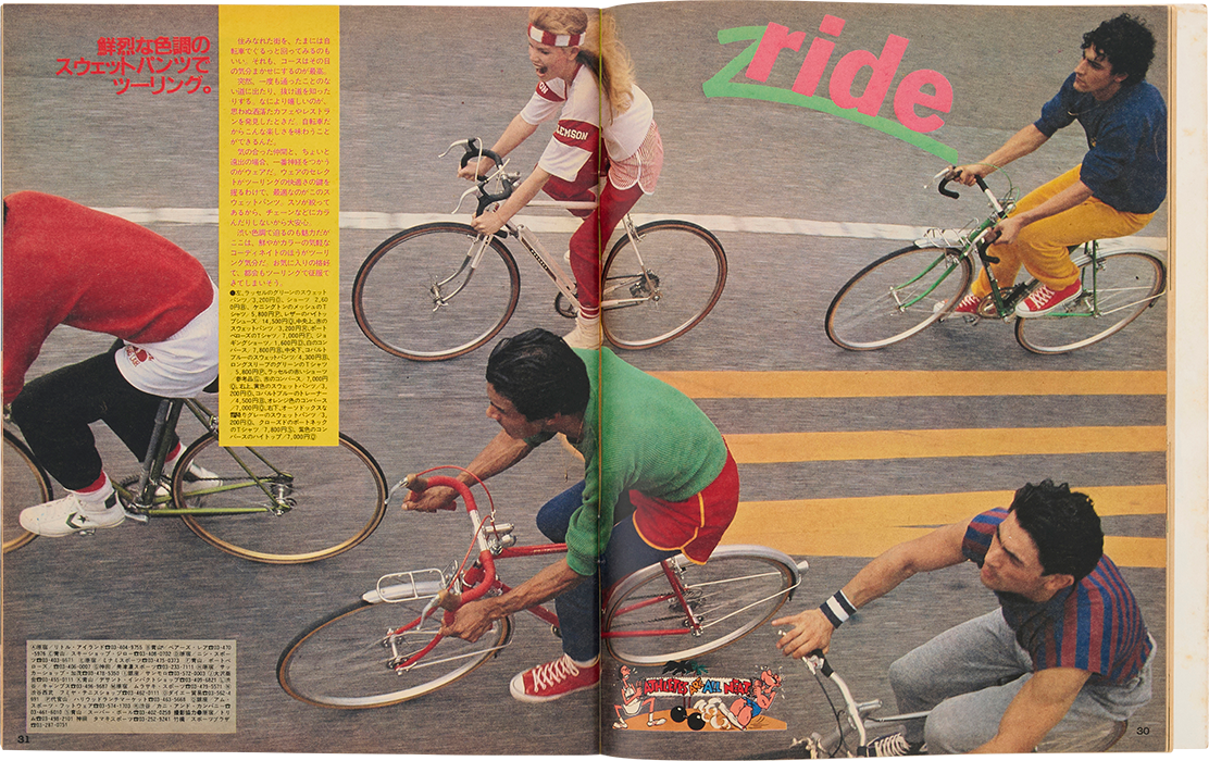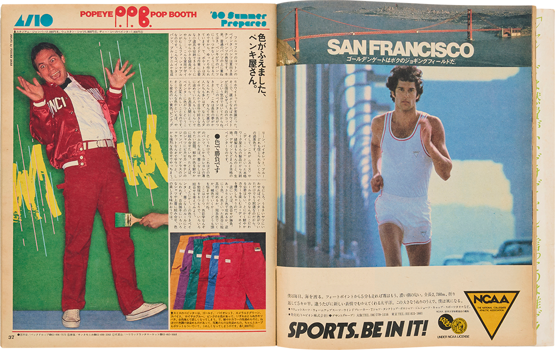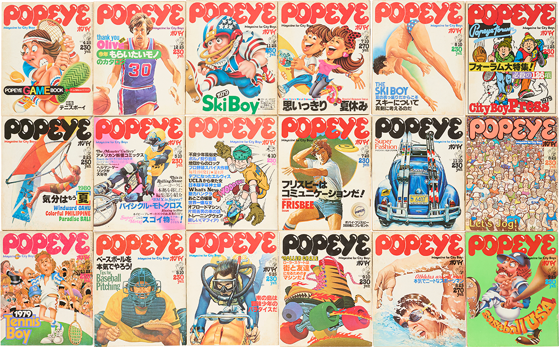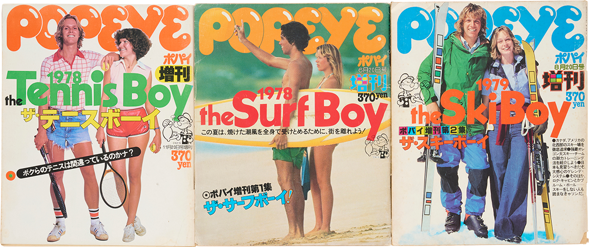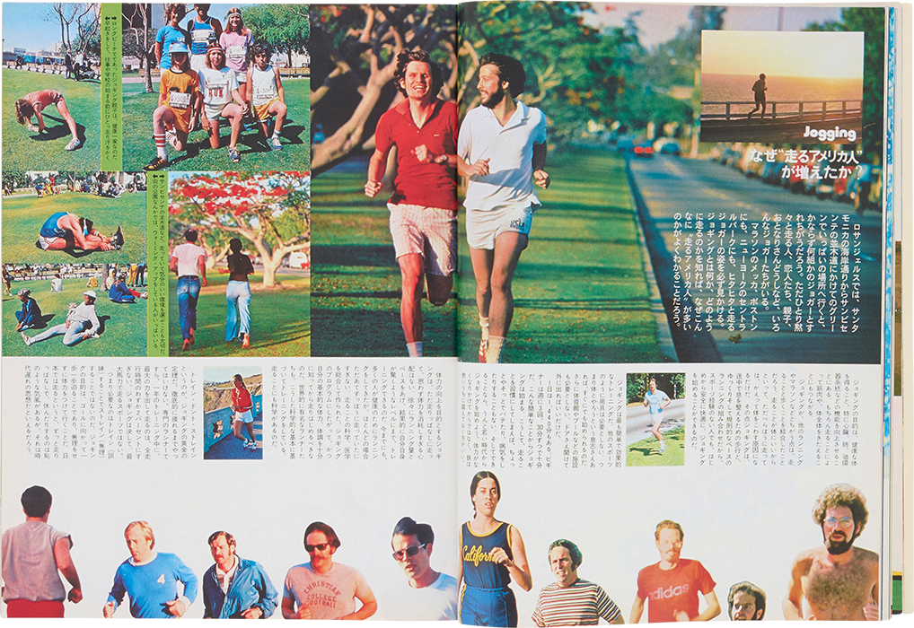 そのブームの先駆けとなったのは、やはり76年の『POPEYE』創刊号のアメリカ西海岸特集だ。LAをはじめとした街で元気に遊ぶジョガー、スケーター、パラグライダーたちを取り上げ、彼らのカルチャーとスタイルを大々的に紹介し、日本の高校生や大学生の読者たちに衝撃を与えた。60年代末〜70年代初頭の若者文化と言えば、ロック、反戦(ベトナム戦争)、アングラ、エロ、ヒッピー、ドラッグといったもので、そこにはどこか不健康なイメージがつきまとっていたが、『POPEYE』の登場はそうした文化を完全に過去のものにし、「健康的なアメリカ」こそが若者たちのトレンドとなった。