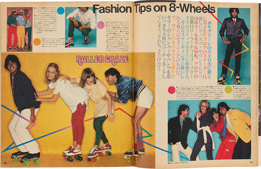その影響もあってか、ここ日本ではブラックミュージックとともにAORやウエストコーストサウンドを流す“サーファーディスコ”と呼ばれる、アメリカンな海っぽさを取り入れたディスコも続々と登場。誰もがアロハシャツでディスコに繰り出し、サーフィンをしないのにサーファーの格好をした連中を揶揄する“オカサーファー”という言葉も生まれたほど。ジョギングパンツとローラースケートでダンスフロアを駆ける文化なんかも到来した。テニスジャージに、ベースボールジャンパー、スキーダウンだって街で大活躍。スポーツやライフスタイルが、ファッションと見事にクロスオーバーしていったのだ。