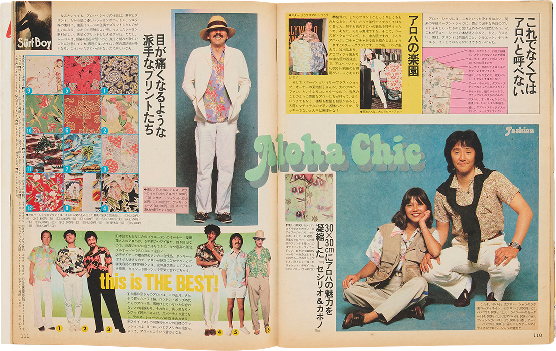 1979年「POPEYE」増刊第1集。コットンアロハ、裏地使いのプルオーバーアロハが大流行。
