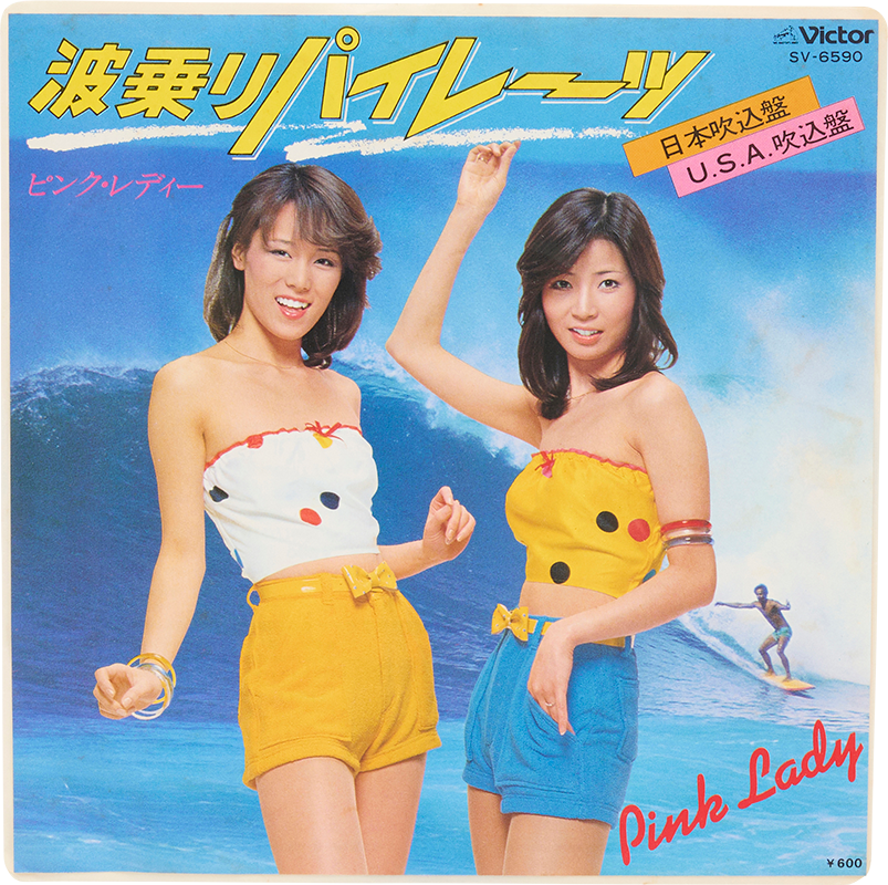 アスレチックのムーブメントは、ファッションのみならず音楽シーンにも影響を与えていた。荒井由実『天気雨』(1976)の歌詞には茅ヶ崎のサーフショップ「ゴッデス」が登場し、大貫妙子『サマーコネクション』(1977)では本人がスケートボードに乗っている写真をレコードジャケットに起用。79年にはピンク・レディーがサーフィンを題材に歌った13枚目のシングル「波乗りパイレーツ」が、週間オリコン4位に。80年以後は今でいう「シティポップ」的サウンドが急増。ビーチガール感をウリにした女性がさらに増え、男性も山下達郎に、大瀧詠一などなど。多くの歌手がトロピカルテイストで人気を博していった。加えて永井博に、鈴木英人といったイラストレーターらが手掛けたトロピカルなレコードジャケットも拍車をかけ、若者は無意識にアスレチック志向を植えつけられていたのだ。