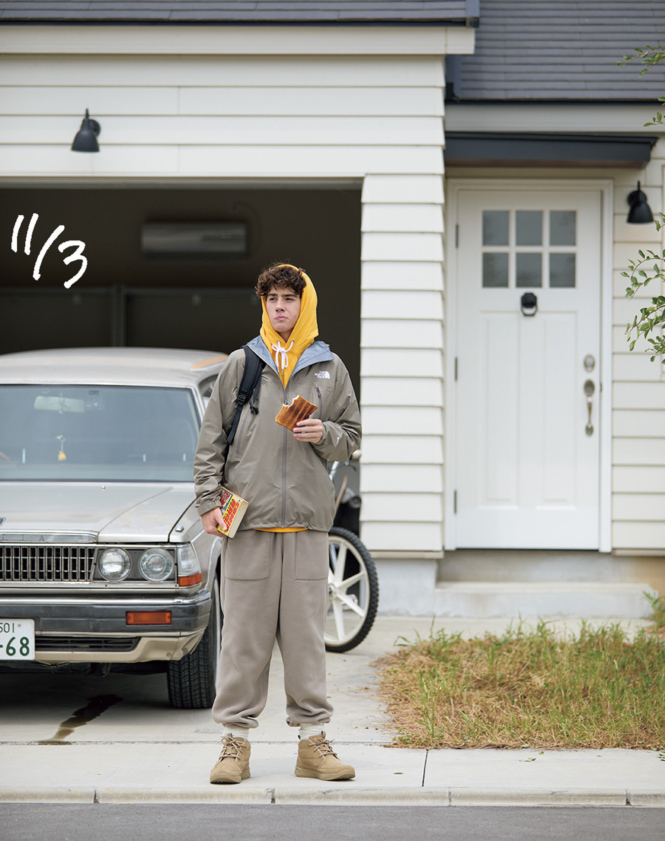 行ってきまーす! 厚手のスウェットの上にダウンを羽織って外に飛び出したら、暑くて引き返すことに。そう、ここ数年、寒さの訪れは遅いのだ。だから、僕はこの冬は〝ミドラー〟を選ぶことにした。聞き慣れない言葉だが、ミドラーとは悪天候から体を守るアウターと素肌を快適に保つベースレイヤーの間にある中間着のこと。薄手のダウンやベスト、フリースがそれに該当するわけだ。〈ザ・ノース・フェイス〉では、シャツはカジュアルにも上品にも振れる万能なミドラーの位置付け。さっそく試してみようということで、ミドラーを使った重ね着のサンプルを3か月分考えてみた。秋から初冬、僕はこんなスタイルで気持ちよく過ごすつもりだ。