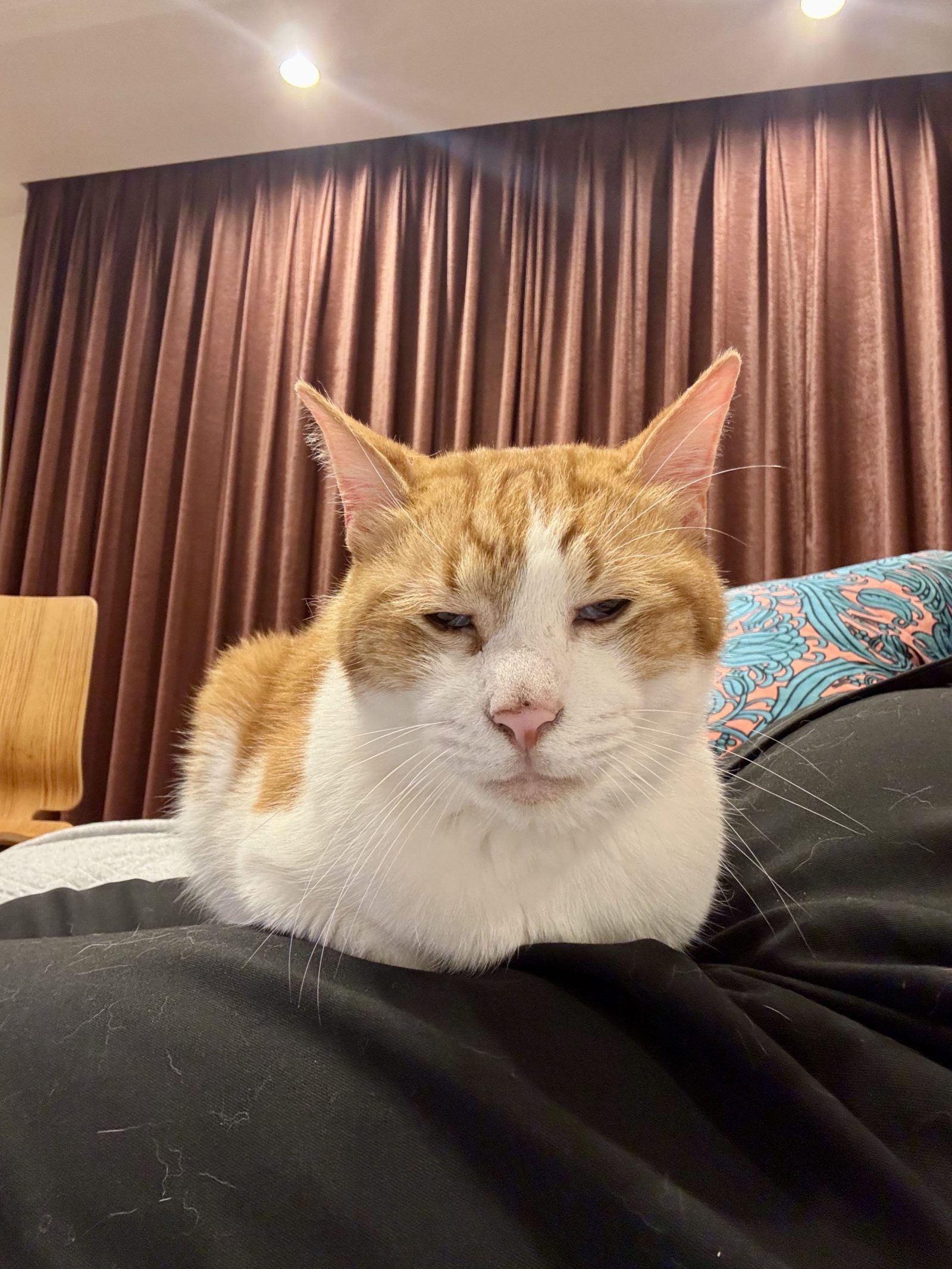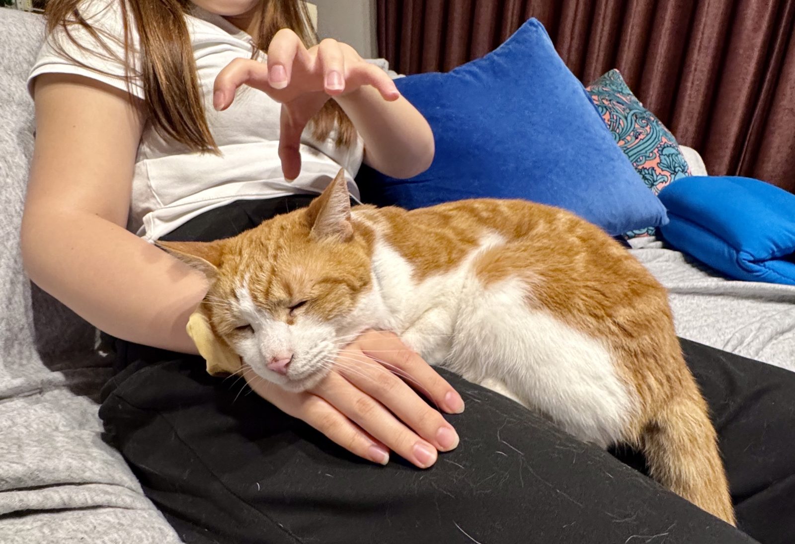 「テレビのリモコン取ってくんない?猫が膝の上に乗ってるから」、「猫がお腹の上で寝てるから動けない。だからアイスを持ってきて」、「お風呂?今は猫が足の間で丸くなってるから完全に無理」等。