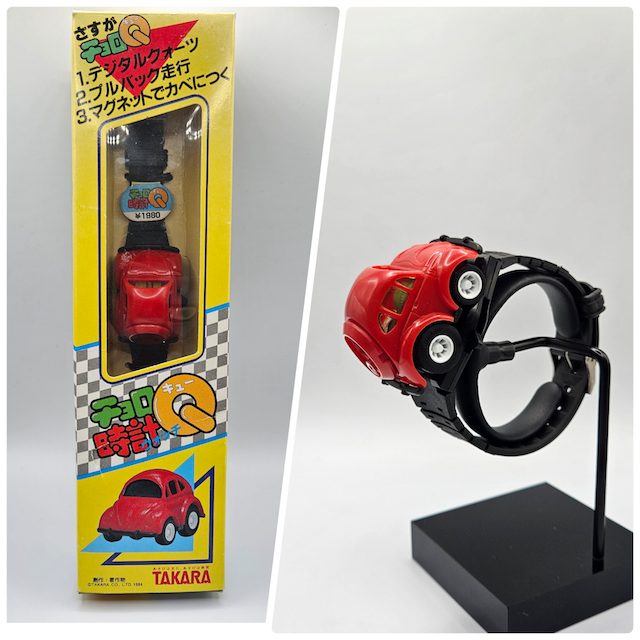 〈TAKARA〉が80年代に発売した、VINTAGEチョロQ腕時計。デッドストックで発掘しました。チョロQをバンドから着脱出来て遊べます。復刻して欲しいですね。