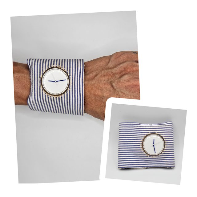 〈SWATCH〉の珍品。シャツの袖に腕時計が仕込まれています。着脱出来るので袖は洗うことも出来ます。凄い発想力!!!