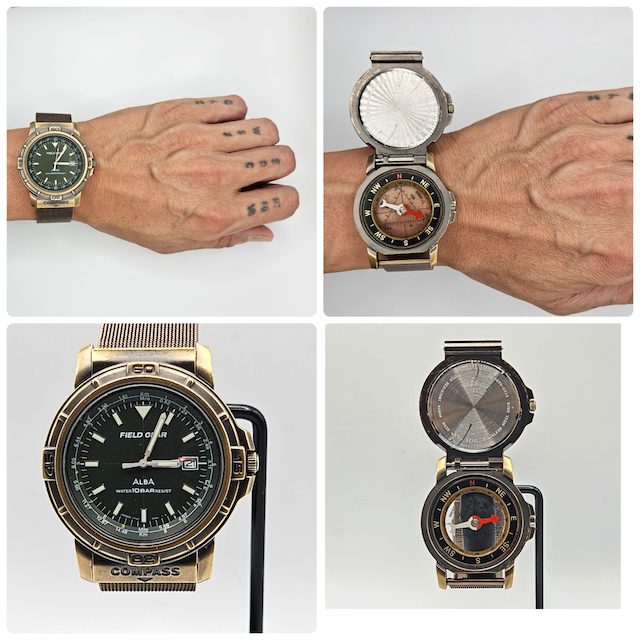 方向音痴の貴方に贈る。コンパスが仕込まれた〈SEIKO〉の珍品。腕時計下部のツマミを持ち上げるとコンパスが!