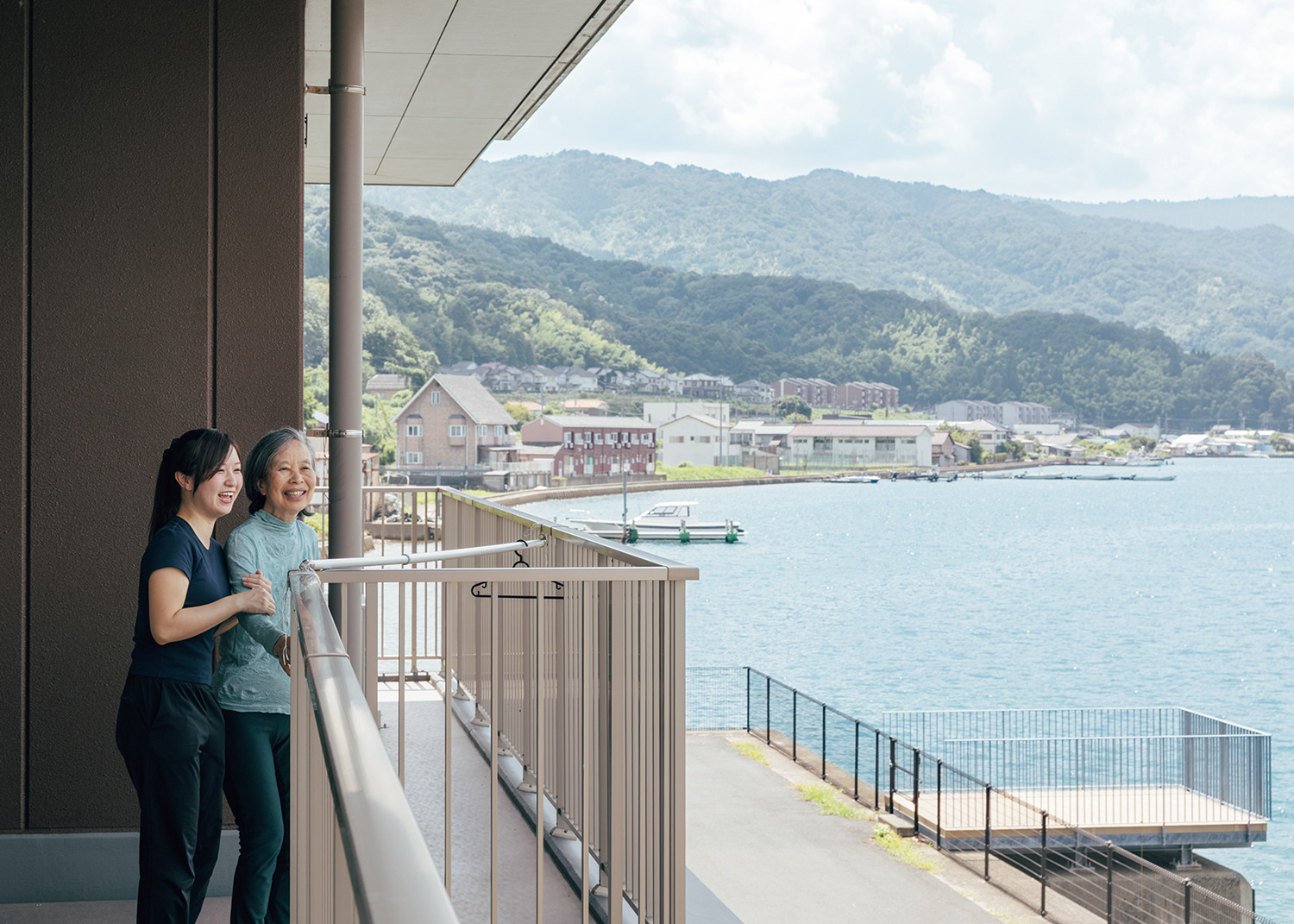 宮津湾を一望する環境で、高齢者たちが健やかに過ごせるようケアを行う。