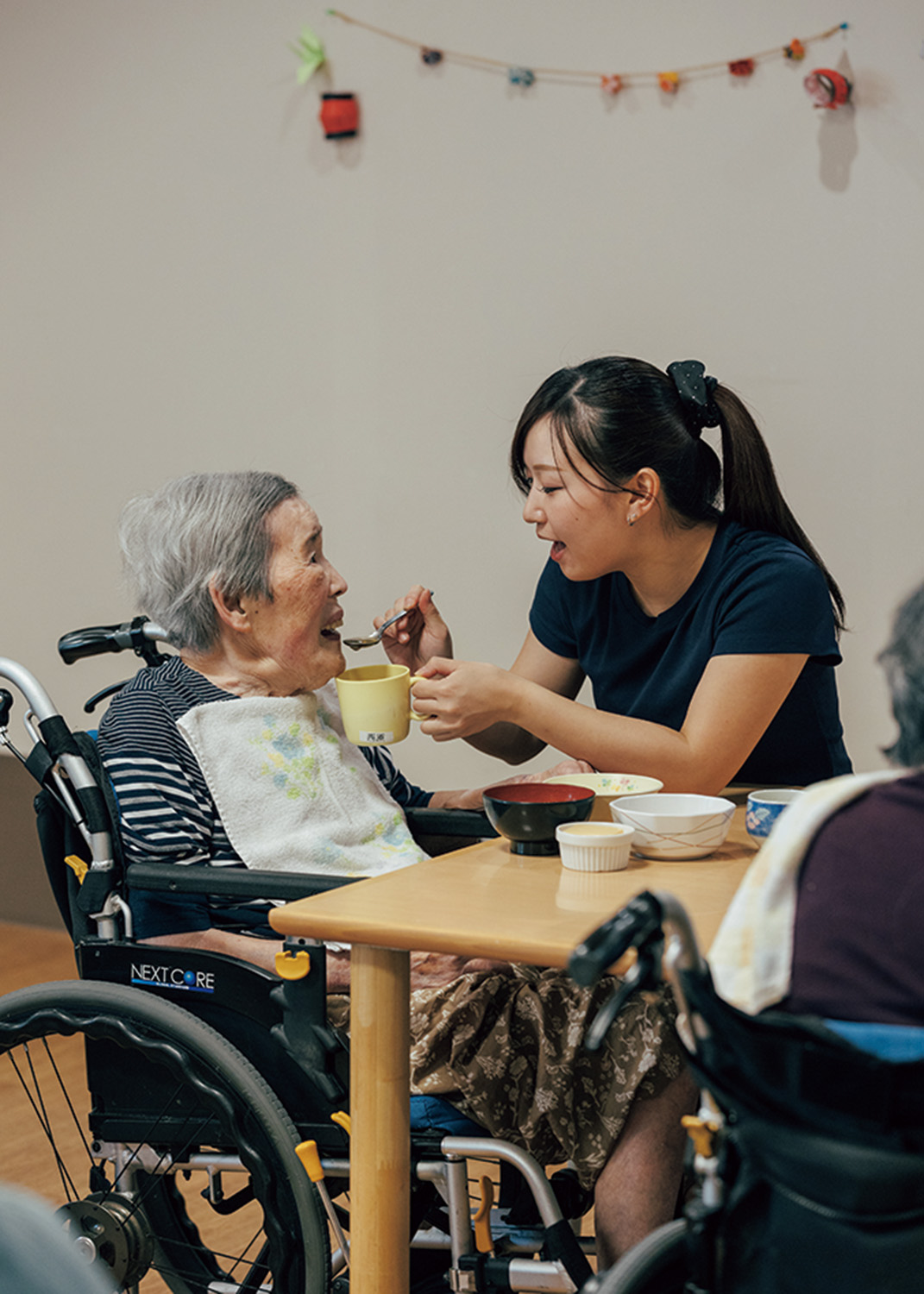 「ご高齢の方の立場になると、身近な人が亡くなり、できていたことができなくなって、気持ちが落ちていくことばかりだと思うんです。入所後に『自分なんて死んだらいいんだ』と仰る方もいます。それでも、もう一回上を向いて残りの人生を頑張ってみよう、楽しもうと思ってもらえたら。そう考えて行動することは、他では味わえないやりがいだと思います。ずっと現場で働きたいです」