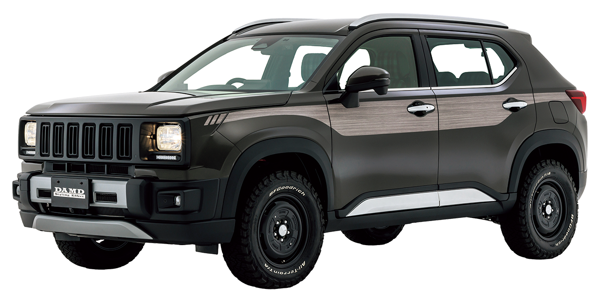 「WR-V リヴァーブ」は、日本でも大ヒットとなった1983年リリースの〈ジープ〉「チェロキーXJ型」をルーツに、6スロットグリルと角目2灯ヘッドランプを備えた一台。ベースは〈ホンダ〉の「WR-V」。燃費の良さ・滑らかな走行を可能にする機能を備えているのが魅力で、舗装路でのストップ&ゴーもスイスイ。その顔つきは、直線が生きるカスタムによって精悍そのもので、ビル群の景観に溶け込みつつ存在感を放つ。都会に馴染むクールな走りを実感するかと思えば、当然、この表情はアウトドアシーンにも似合う。ラゲッジ容量・約458ℓという十分な積載量も嬉しい。