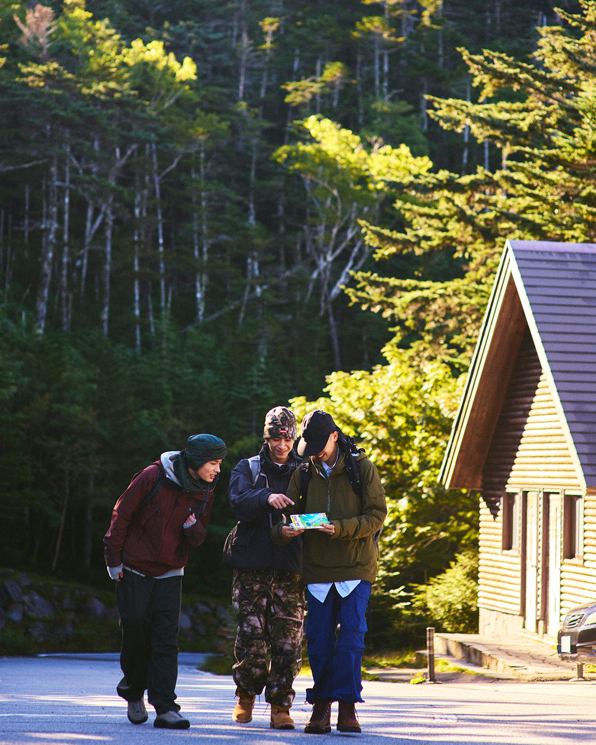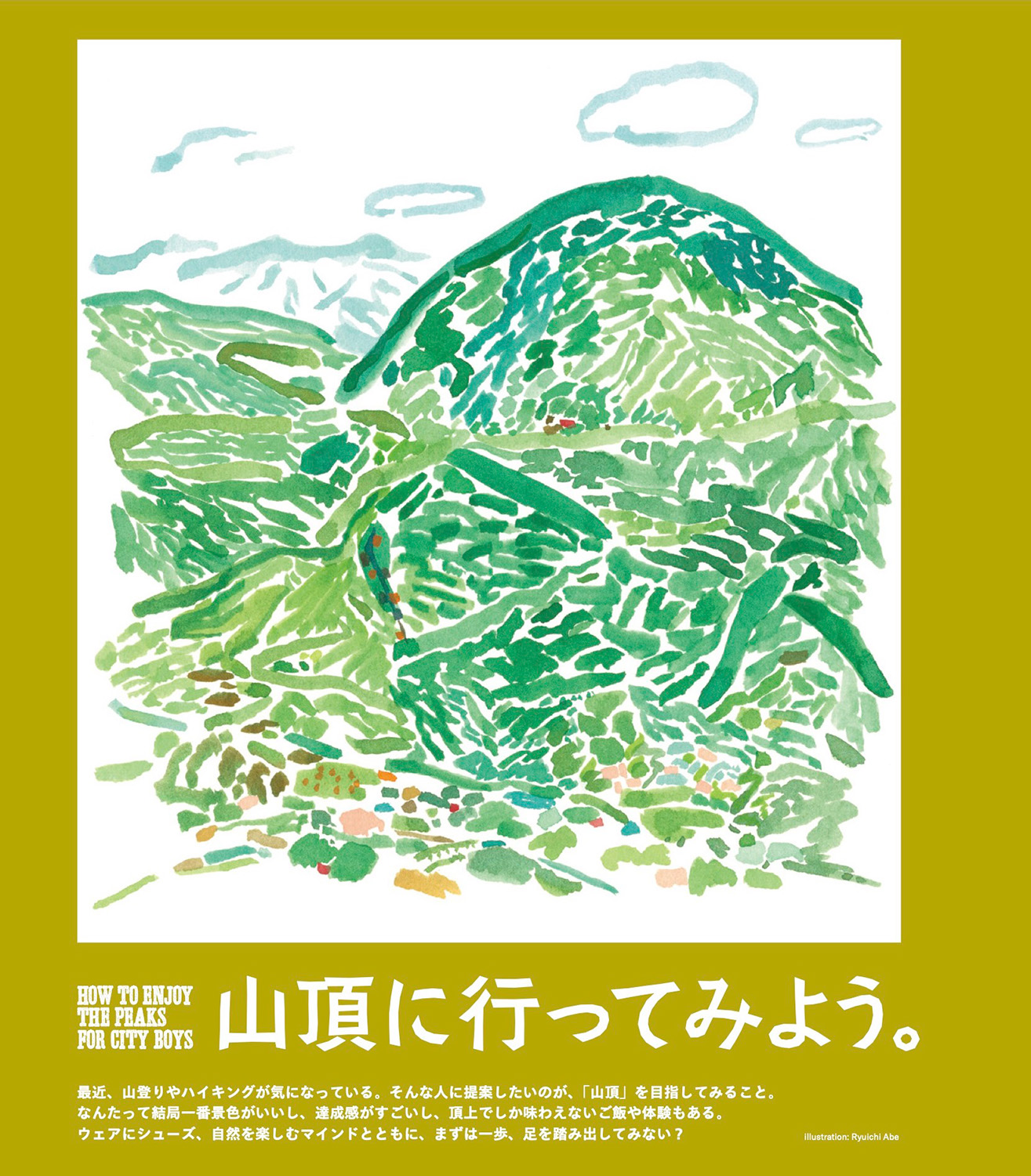 街中でふと出くわした、壮観な山頂からの眺めを捉えた広告ポスターに惹き込まれ、友達を誘って山へ。3人のシティボーイたちがそれぞれに準備をして、街と山を気分よく行き来するためのミックススタイルを作る物語。