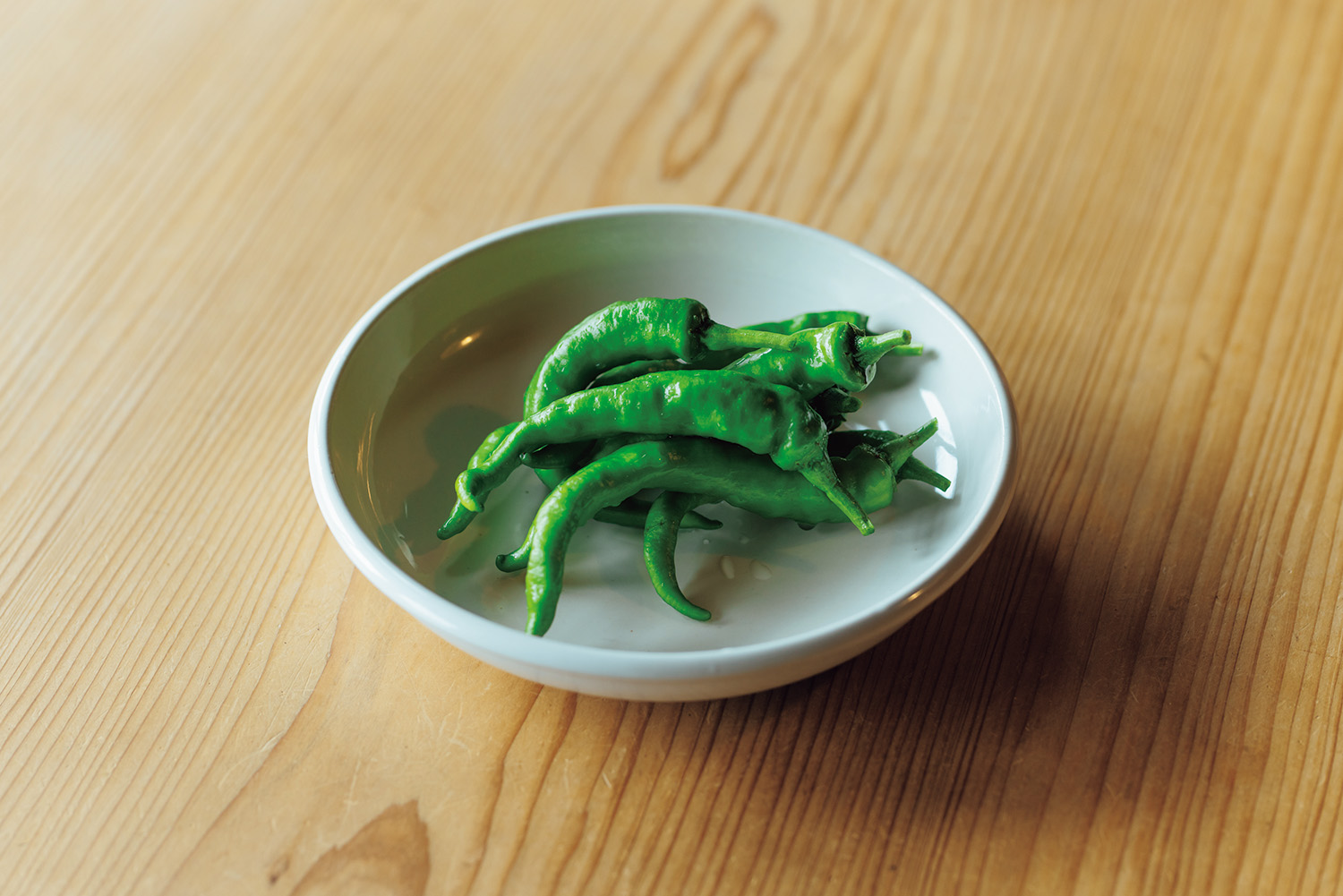 江戸時代から栽培される京都・伏見地区の伝統野菜。写真は岩崎政利さんが雲仙で種採りしてきたもの。「辛味はなく、ピーマンのような味わい。焼いて、強めの塩で味付けすればスナック感覚で味わえます」