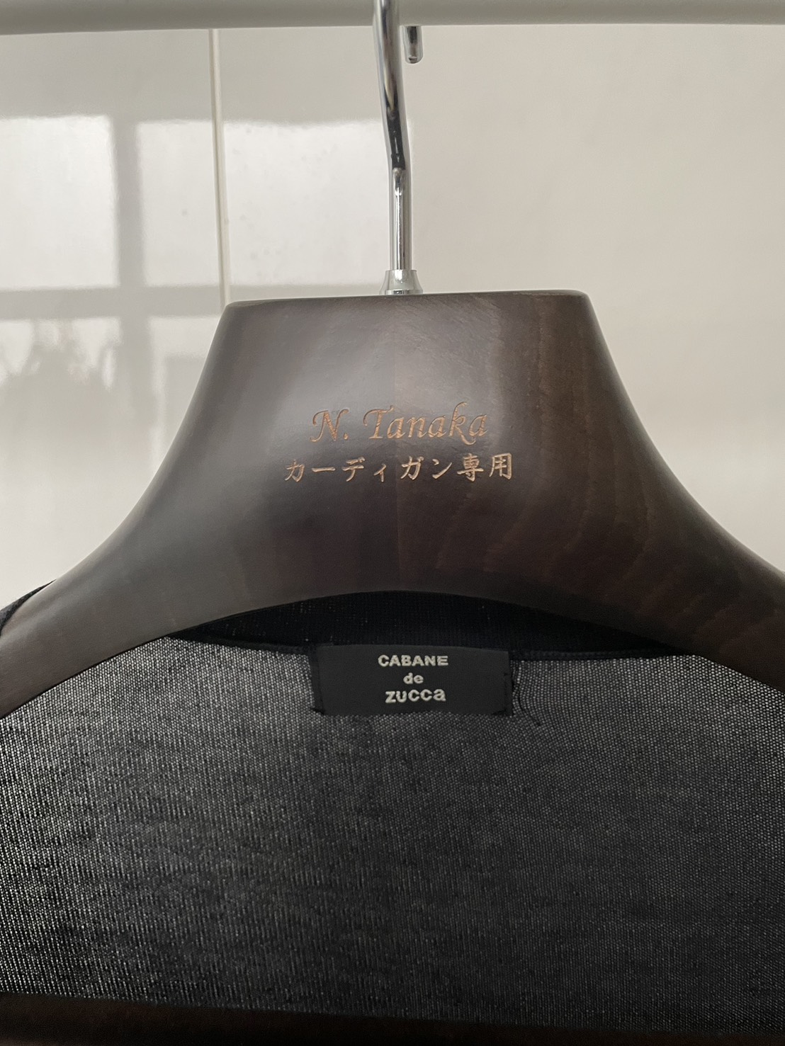 私がカーディガンが好きだという事で、「カーディガン専用」とわざわざ刻印を入れてくれました。「カーディガン専用」という言葉自体、ほとんど聞いた事がないのでとても気に入っています。