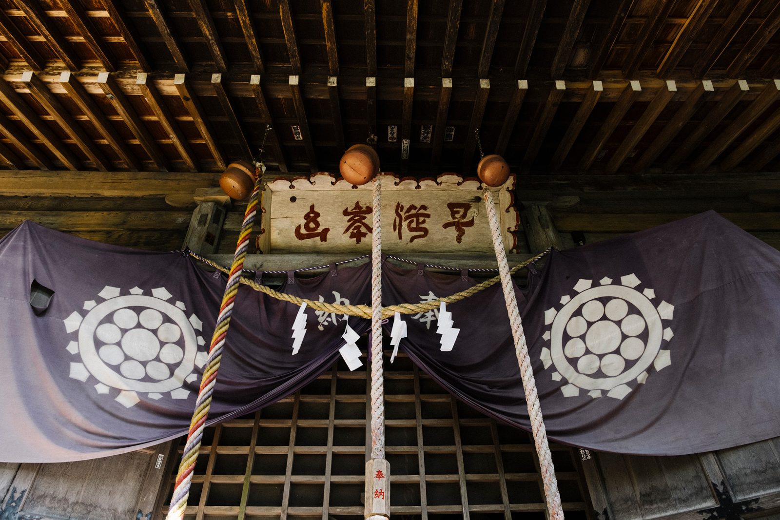 遠野市の北部に聳える早池峰山を霊峰として祀っている「早池峯神社」。境内には観音像があったり(遠野全体で7体ある)、子孫繁栄を祈る性神コンセイサマがあったり、土着性をビンビンに感じる。富川さんの張山シシ踊りとも縁深く、シシ頭に社紋が配されている。