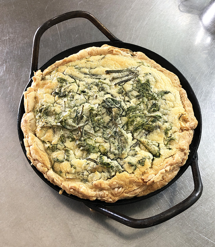 新玉ねぎをねっとり炒めたペーストで、こんがり焼いたすす竹の青臭さと香ばしさをまとめるパスタ。