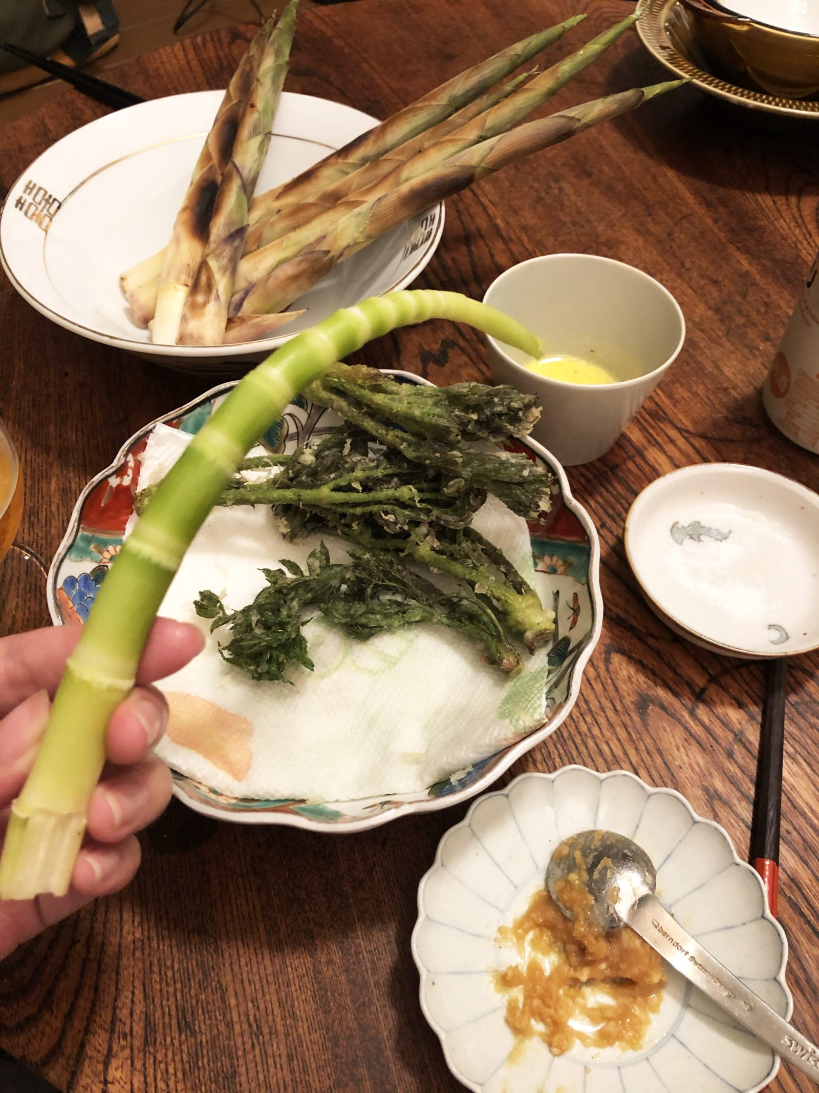 すす竹が採れたらまずはコレ。サッと洗って魚焼きグリルでこんがりと焼く。時間が経つとアクが強くなってくるので、帰宅して即調理したい。塩やみそ、オリーブオイルマヨなどお好きなソースで! パンダの気持ちになれる一品。