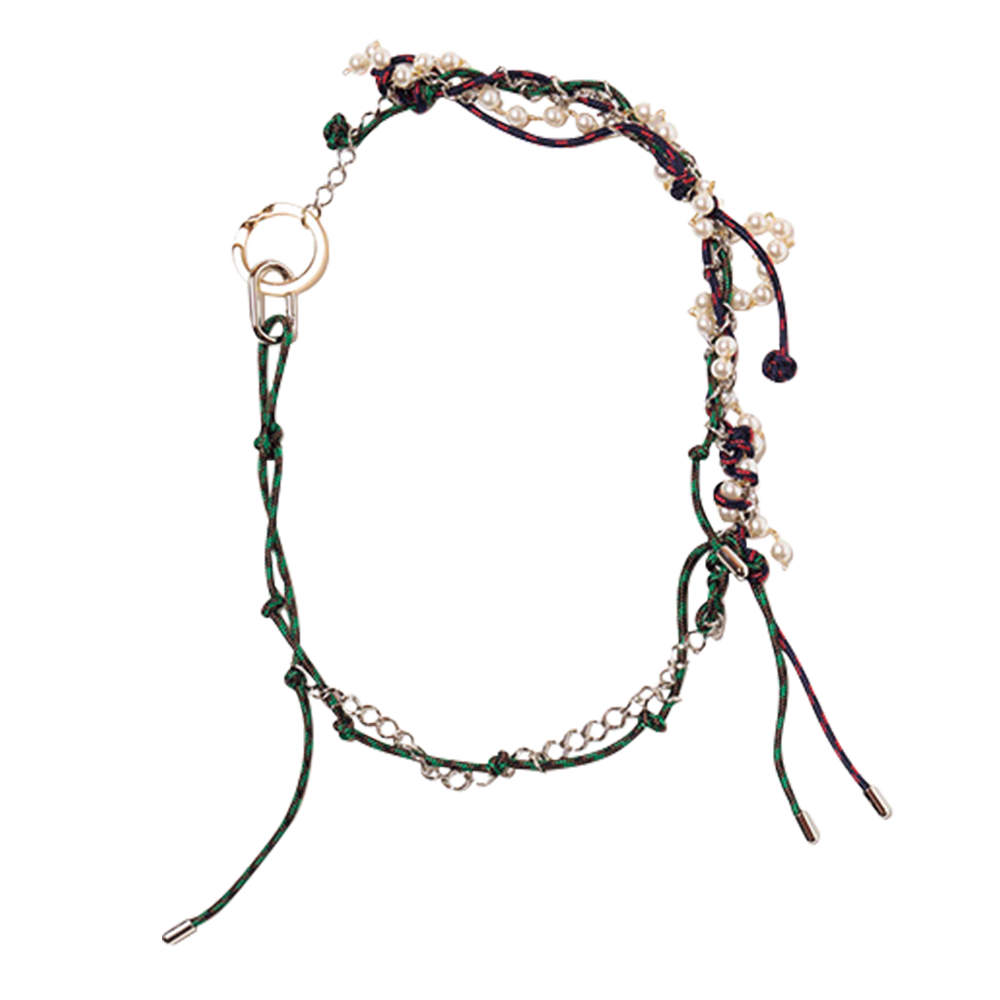 都内以外では初の〈kolor〉直営店で南青山店に次ぐフロア面積を誇る。50本限定のネックレス(¥36,300)はウォレットチェーン、ブレスレットとしても使用可能。真鍮のチェーンやパールなどがあしらわれていて存在感抜群。