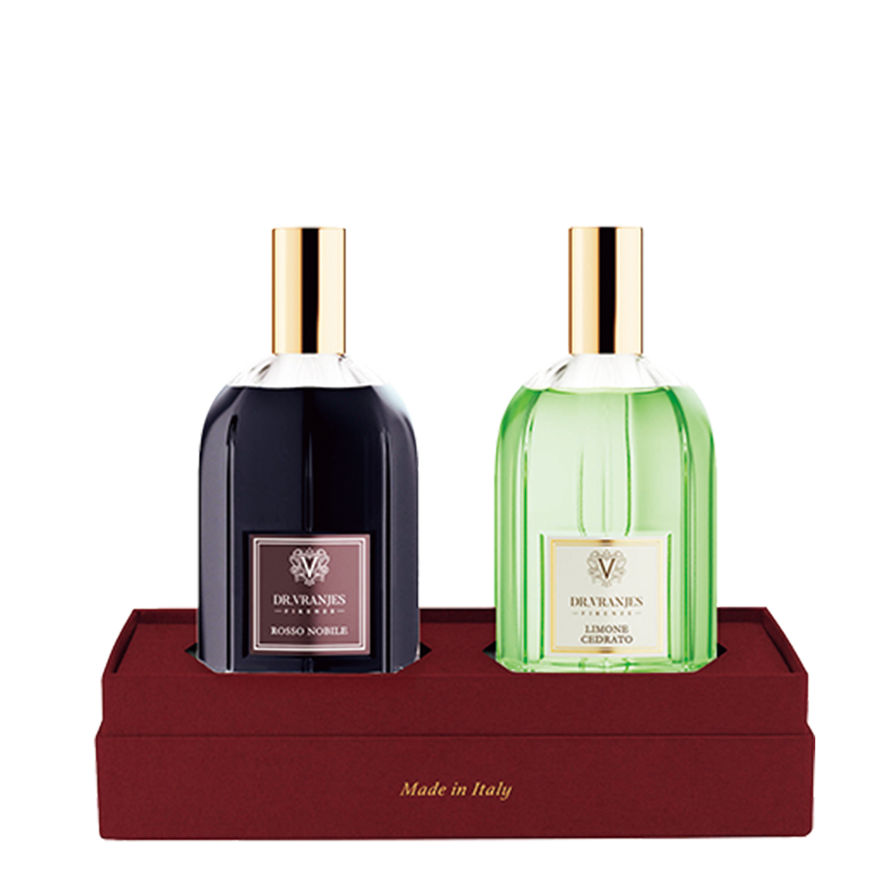 フィレンツェ発のフレグランスブランド。芳醇なボルドーワインを表現した「ロッソ ノービレ」とフィレンツェのレモンを基調とした「リモーネ チェドラート」、2種類の香りのルームスプレーセット(¥13,750)はギフトに◎。