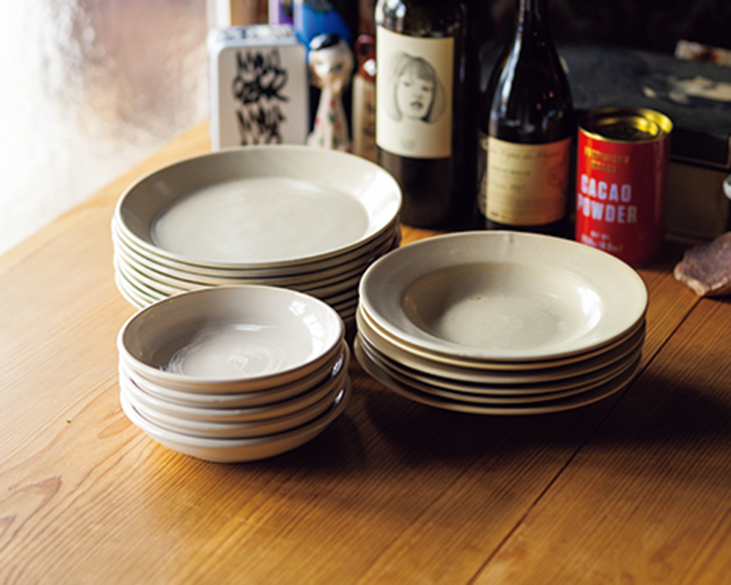 『BEARD』の器は、『郡司製陶所』のもので統一。「オーバルプレート」(¥4,950)など、いつでも購入できる定番の形もある。手仕事ならではの風合いとシンプルさが魅力なのだそう。