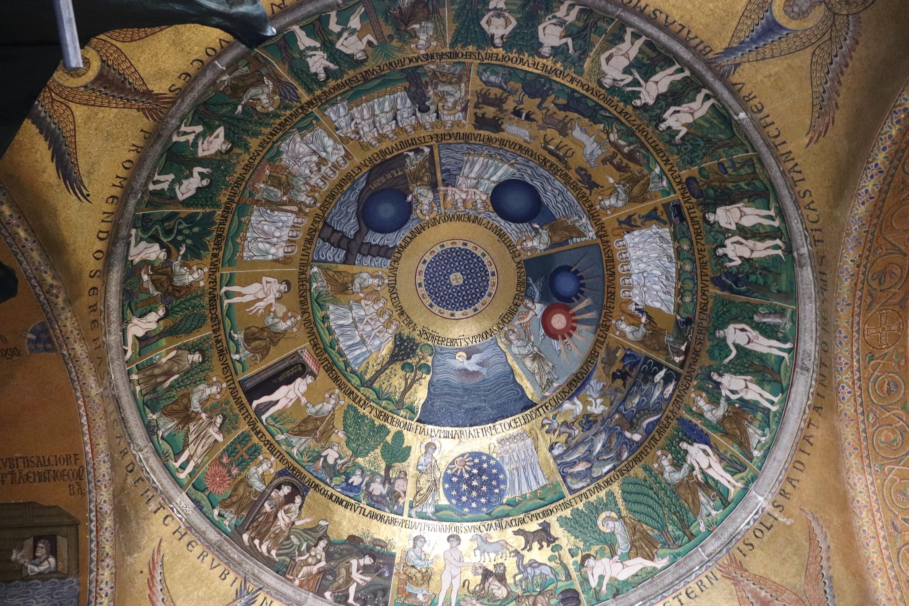 その壁面にはキリスト教の聖書物語や聖マルコの生涯が描かれ、窓から差し込む光の加減によって金色の輝きが時とともに表情を変えます。モザイク装飾は1071年頃に始まり、約800年〜900年もの歳月をかけて拡張や補修がされたため、時代ごとにモザイクのテイストが異なるのも興味深い点です。