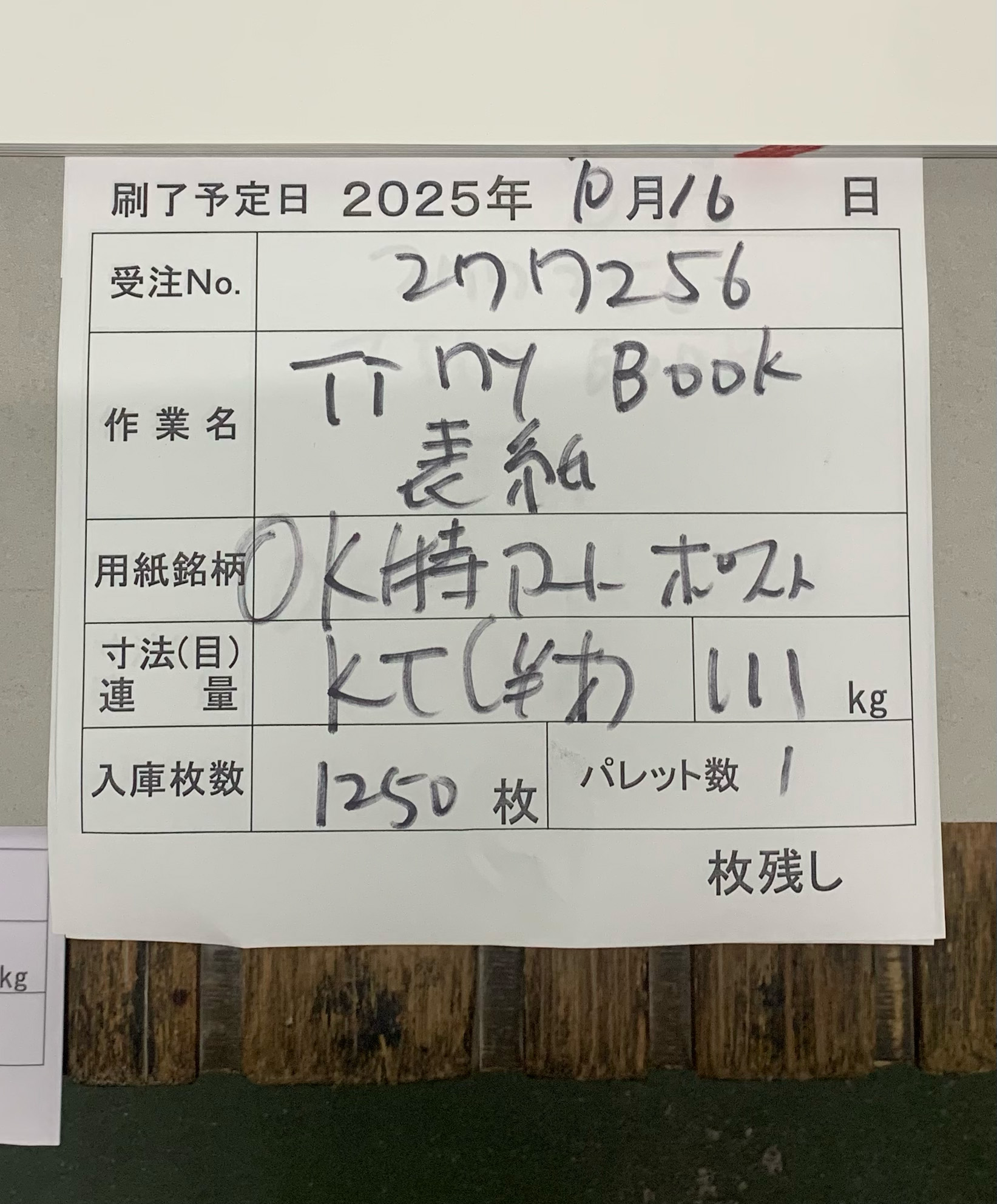 校了の数日後。「無事に印刷の準備が出来たので見にきてください!」という大洋印刷さんからの連絡を受けてやってきたのは、小さな町の印刷工場。足を踏み入れると、空港の保安検査場にある荷物検査の機械くらいのゴツいプリンターがどーんと2台、少し窮屈そうに並んでいる。そのうち1台を見てみると、「Tiny Book」と書かれた紙の束がすでにセットされていた。この用紙に印刷されていくんだ!