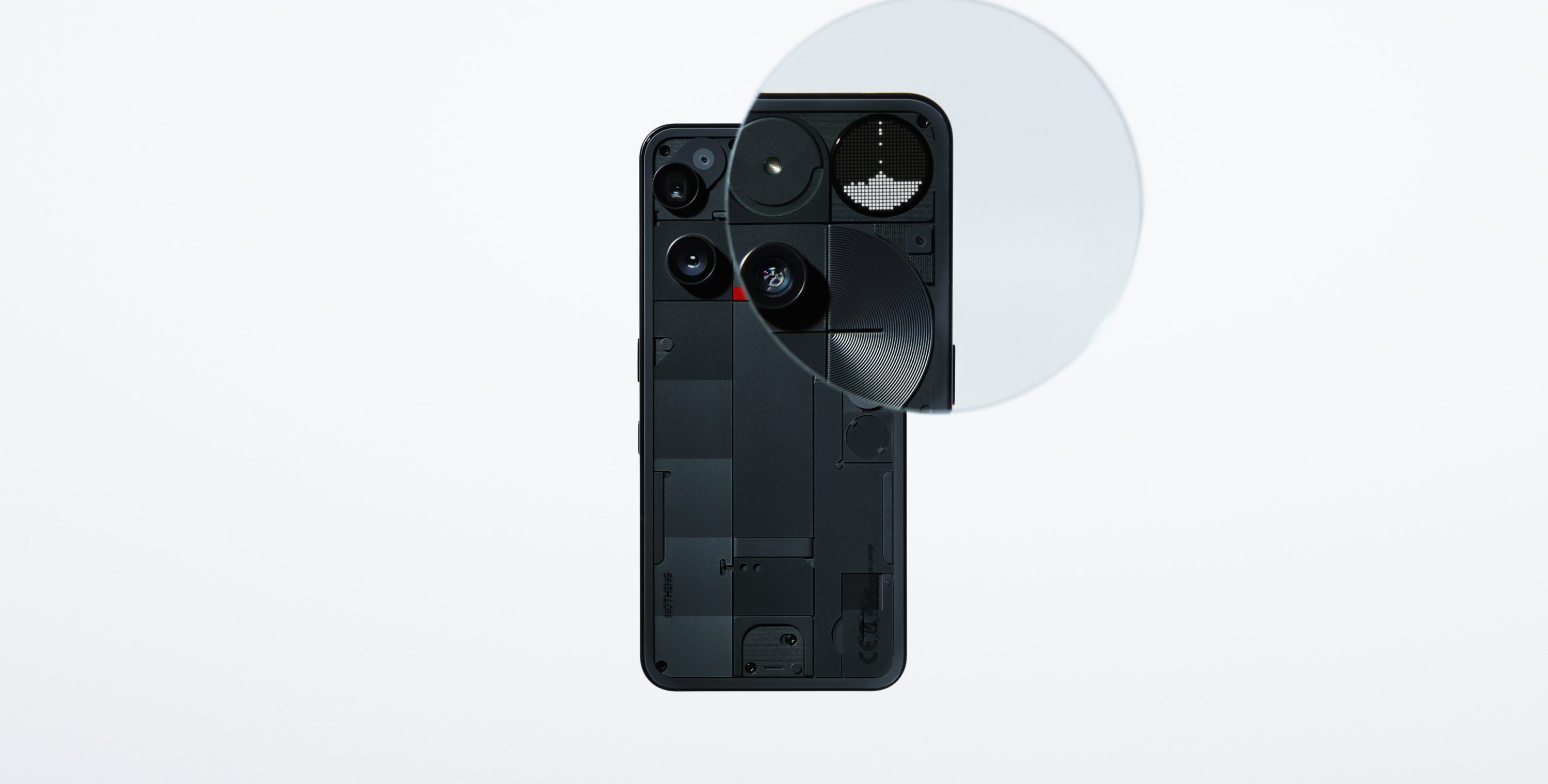 背面の3つのカメラはいずれも50MPで高精細な写真を撮影できる。右上の円形ディスプレイ「Glyphマトリックス」は時刻やバッテリー残量の表示に加え、じゃんけんや瓶回しなどのミニゲームも楽しめる。さらに、ユーザーが自由にアプリを作ることもでき、今後遊びの幅が広がっていくのが楽しみだ。