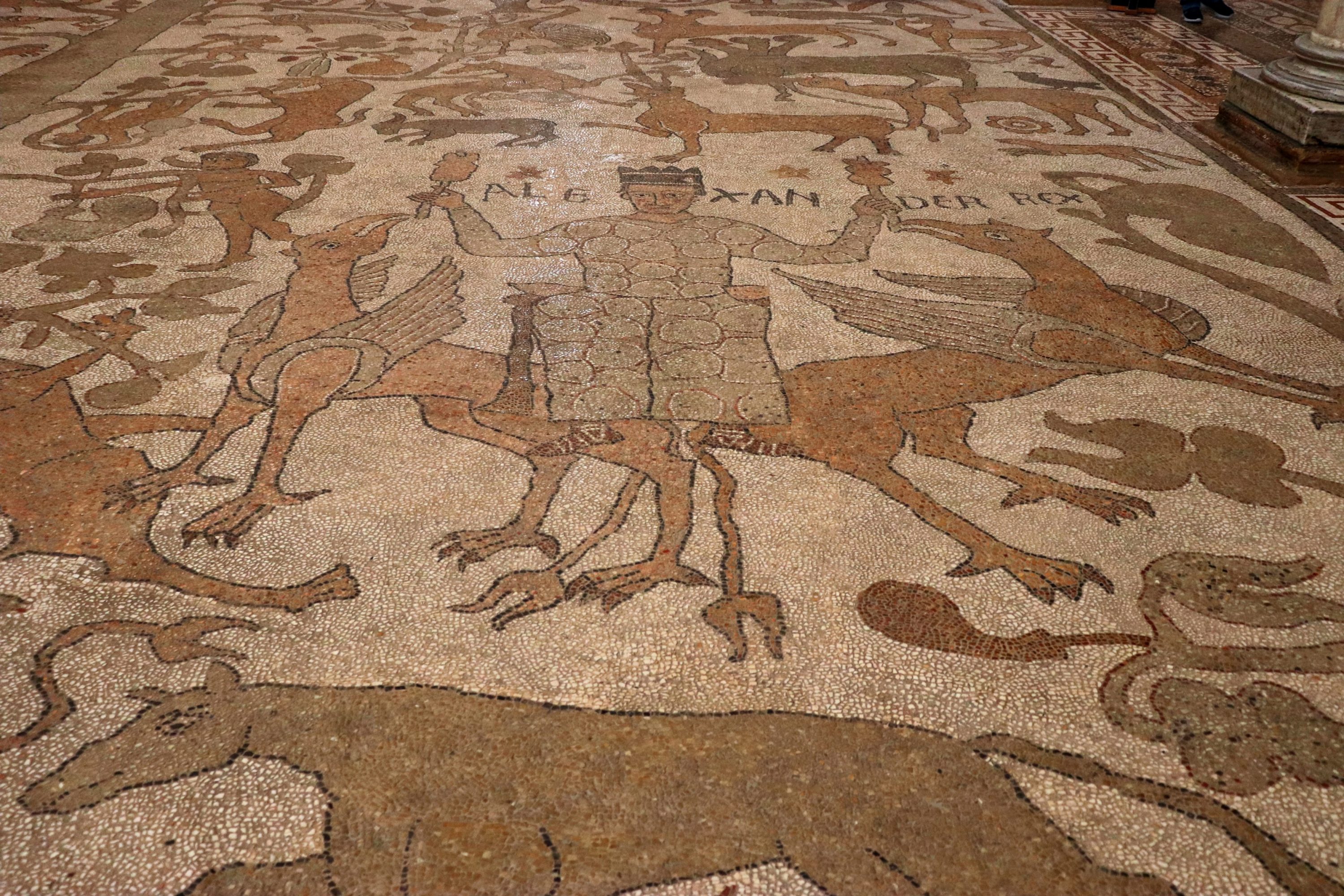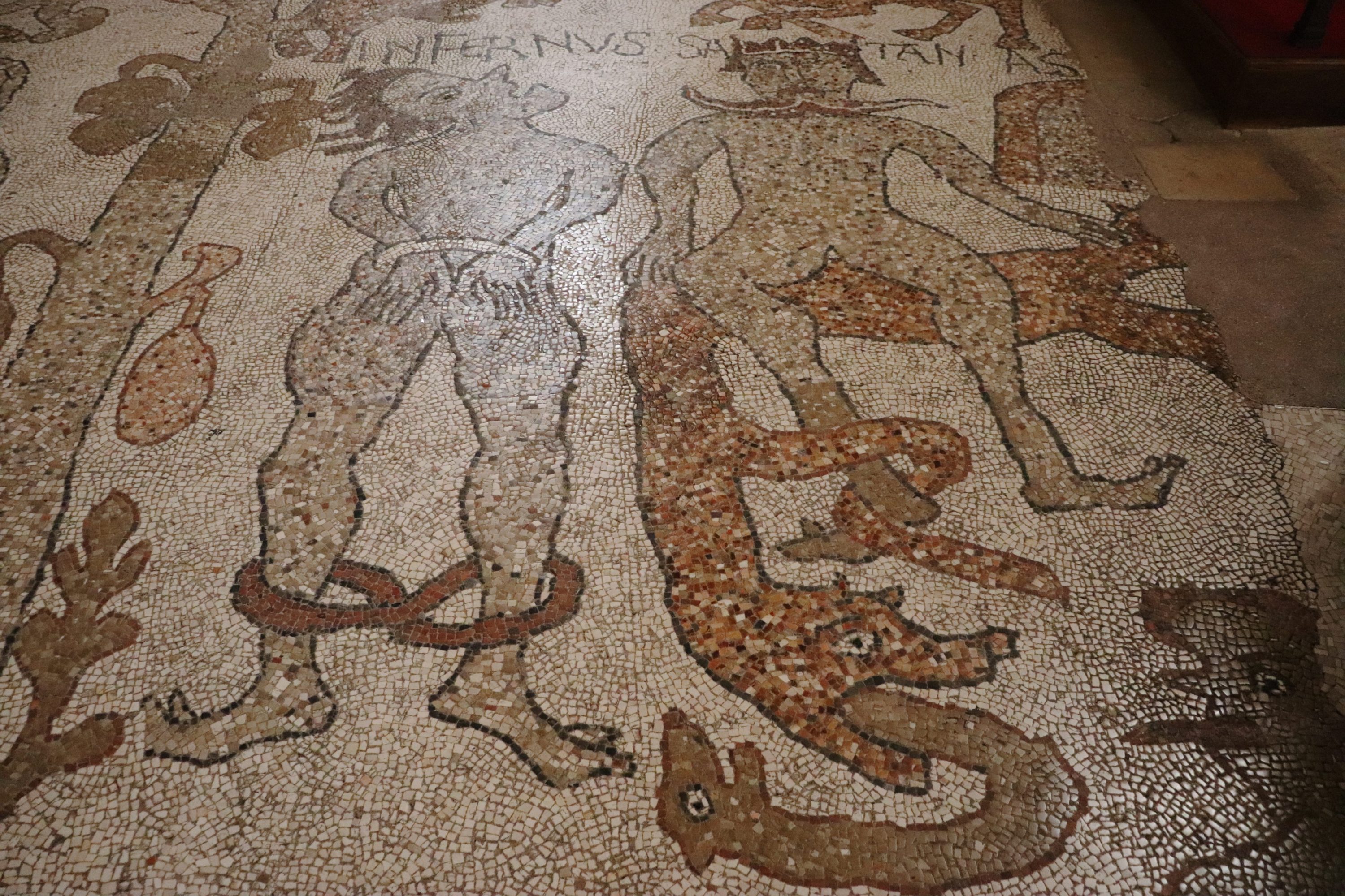 このモザイクは聖職者であるパンタレオーネによって制作され、1165年に完成しました。興味深いのは、当時の聖堂装飾に見られる伝統的な技法や形式にとらわれないモザイクを作り上げた点です。この自由でおおらかな表現が、どこかやさしさを感じさせます。