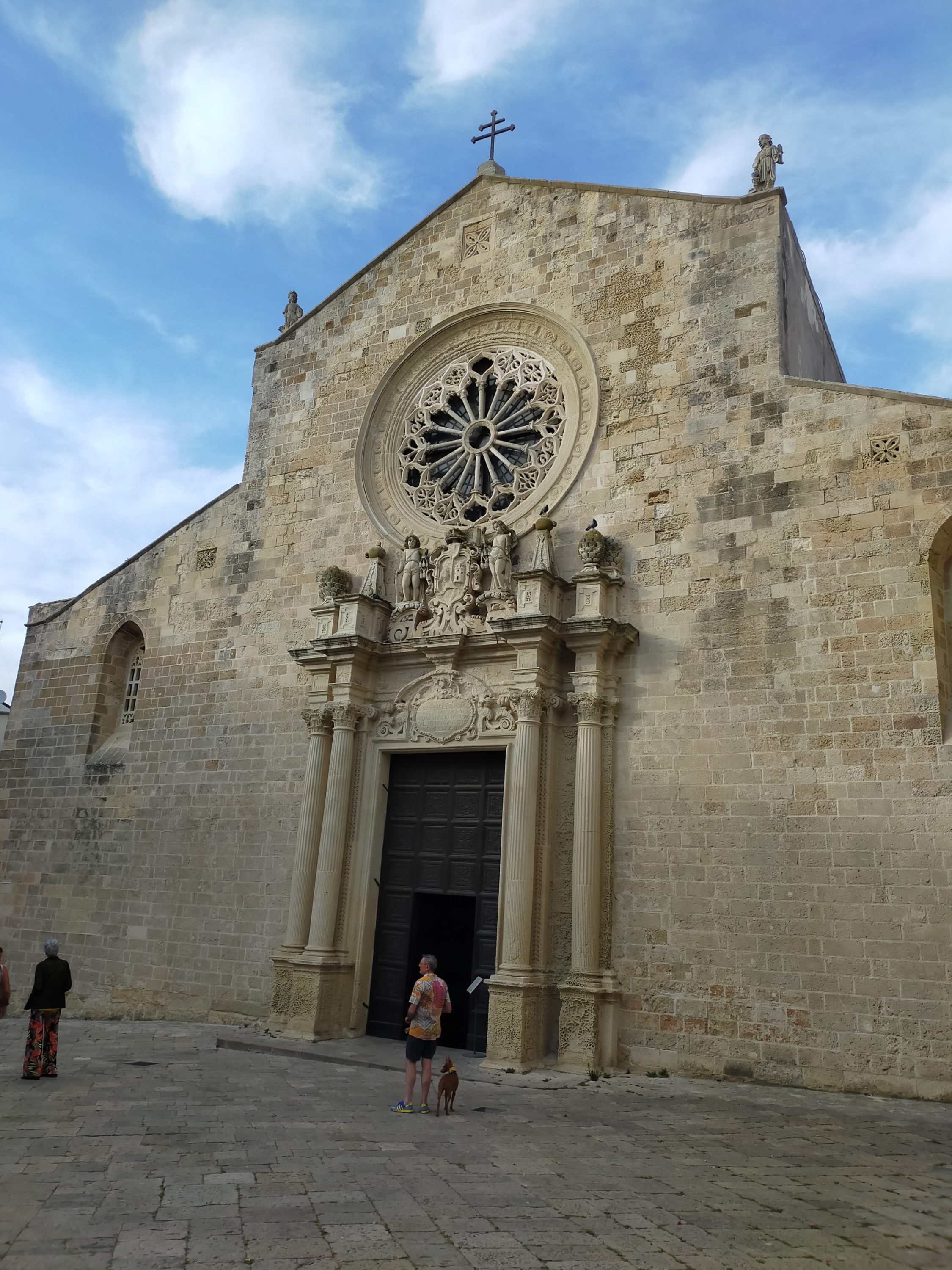 ブーツの形をしたイタリア半島の「かかと」にあるオトラントは、夏になると美しい海を求めて人々が集まる街。城壁に囲まれた旧市街が残っていて、その中心となる高台に立派な聖堂があります。