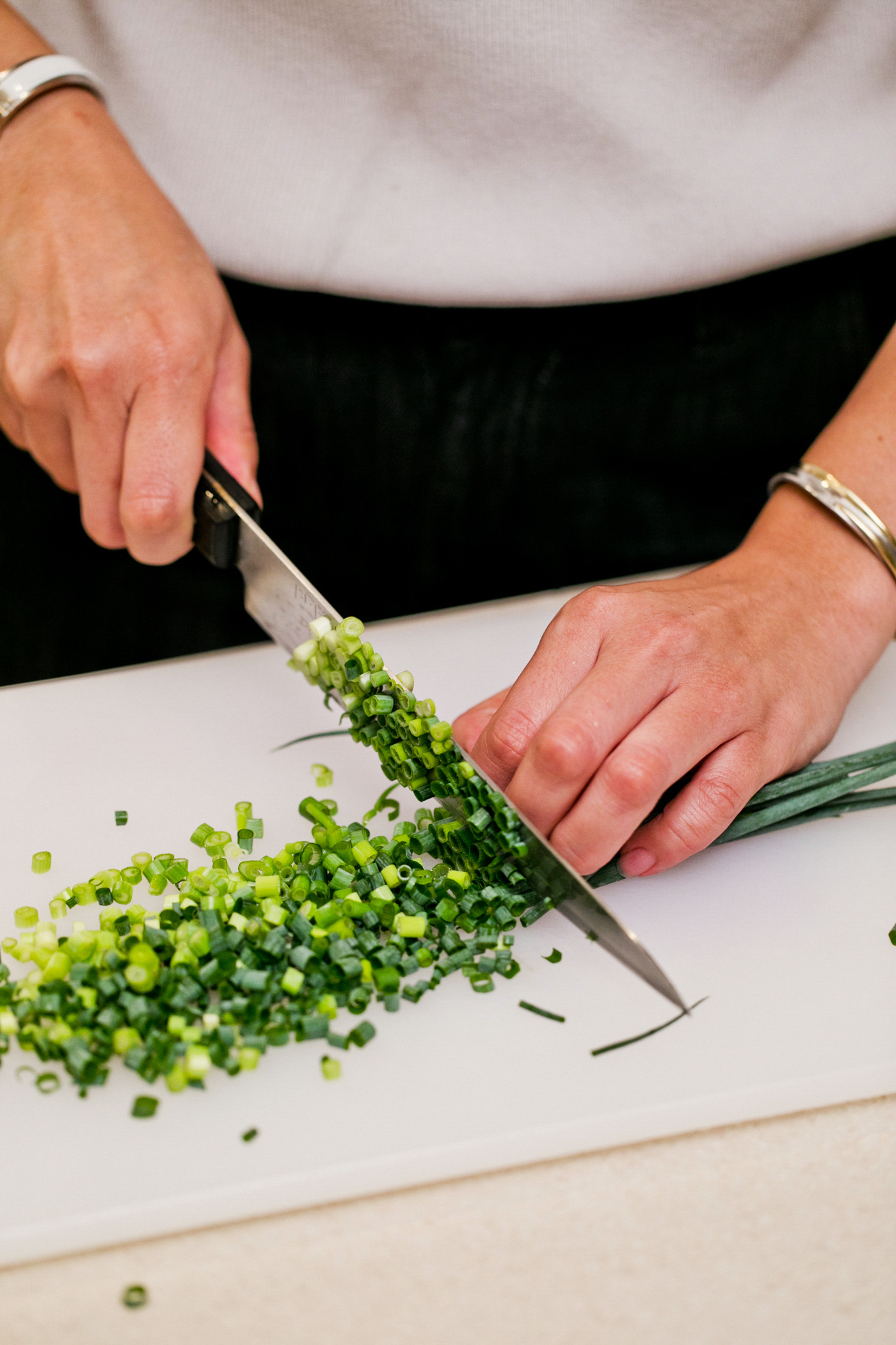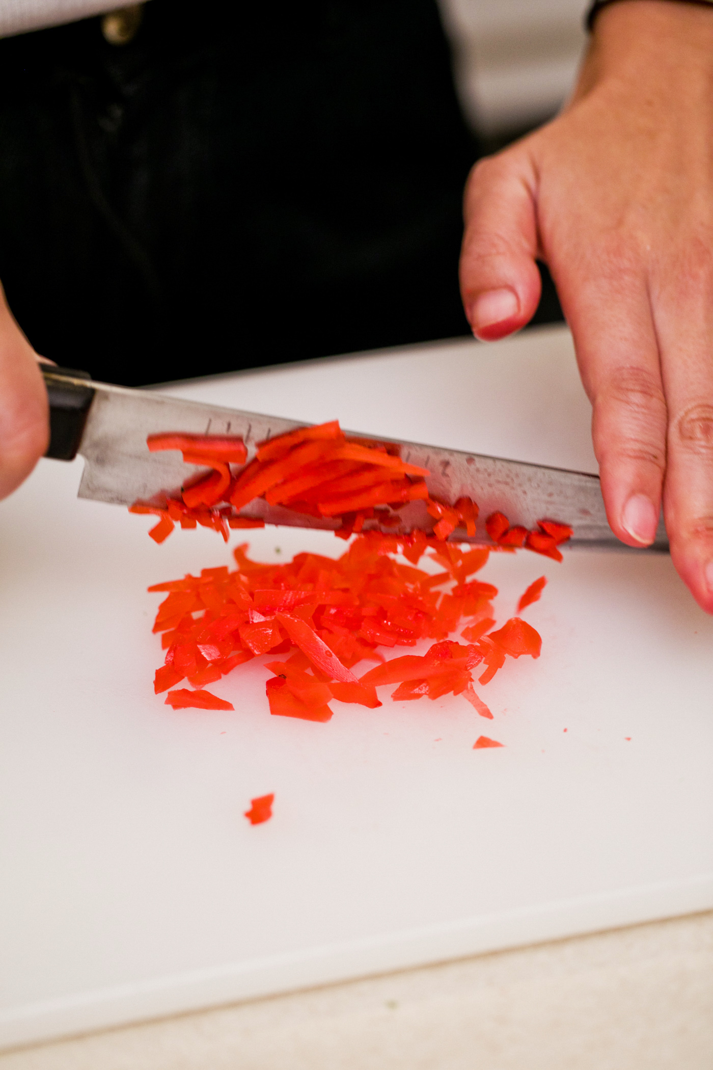 紅生姜を刻む。お好みで大葉やちくわなどを入れる場合はこのときに一緒に切っておく。