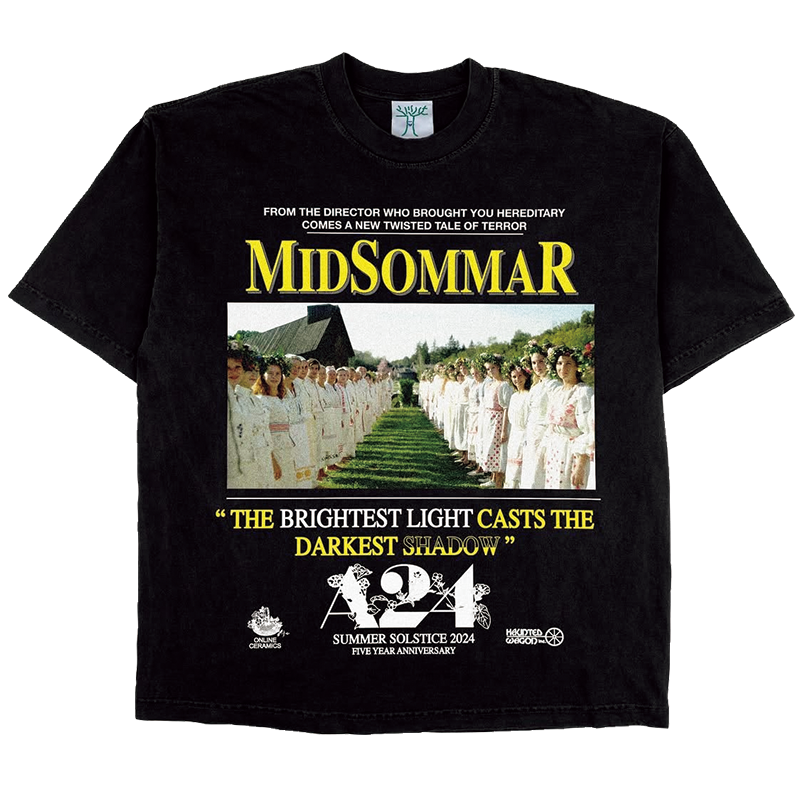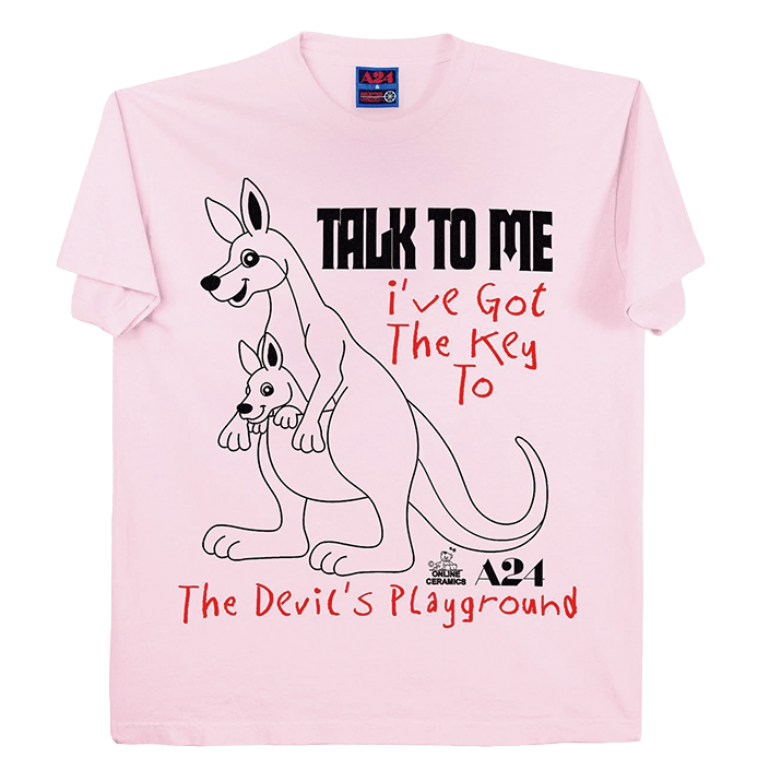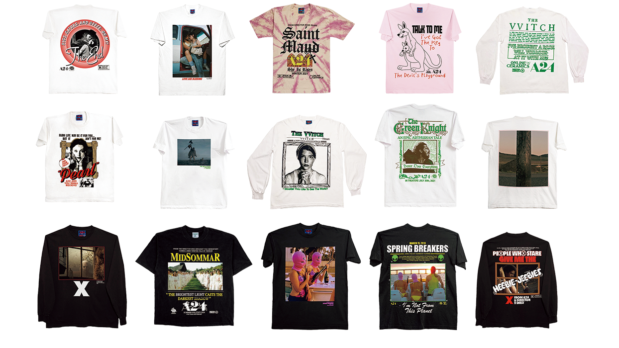 年々存在感を増し続け、今や映画好きで知らぬ人はいない「A24」。かつては小さな独立系レーベルだったけど、世紀を代表する映画製作会社に成長した。そんなA24とともにあったのがご存じ〈オンライン セラミックス〉。ブートで作った『ヘレディタリー』のTシャツが後に公式化というエピソードを持つ彼らは、ロサンゼルスのスタジオで手染め・手刷りを続け、作品の持つ空気をタイダイの色や歪んだ文字で可視化。オンラインショップはありがたいことに日本まで配送してくれるってことで、映画の世界をぼくらの日常へ引き寄せてくれた。衣替えで半袖を全部クローゼットの奥にしまっちゃう前に、今日は並べて見つめ直して、いろんな映画を思い出してみよう。確かに思い出される感動の数々……いや恐怖の割合がちょっと多め。しかし11枚も並ぶとなかなか壮観!