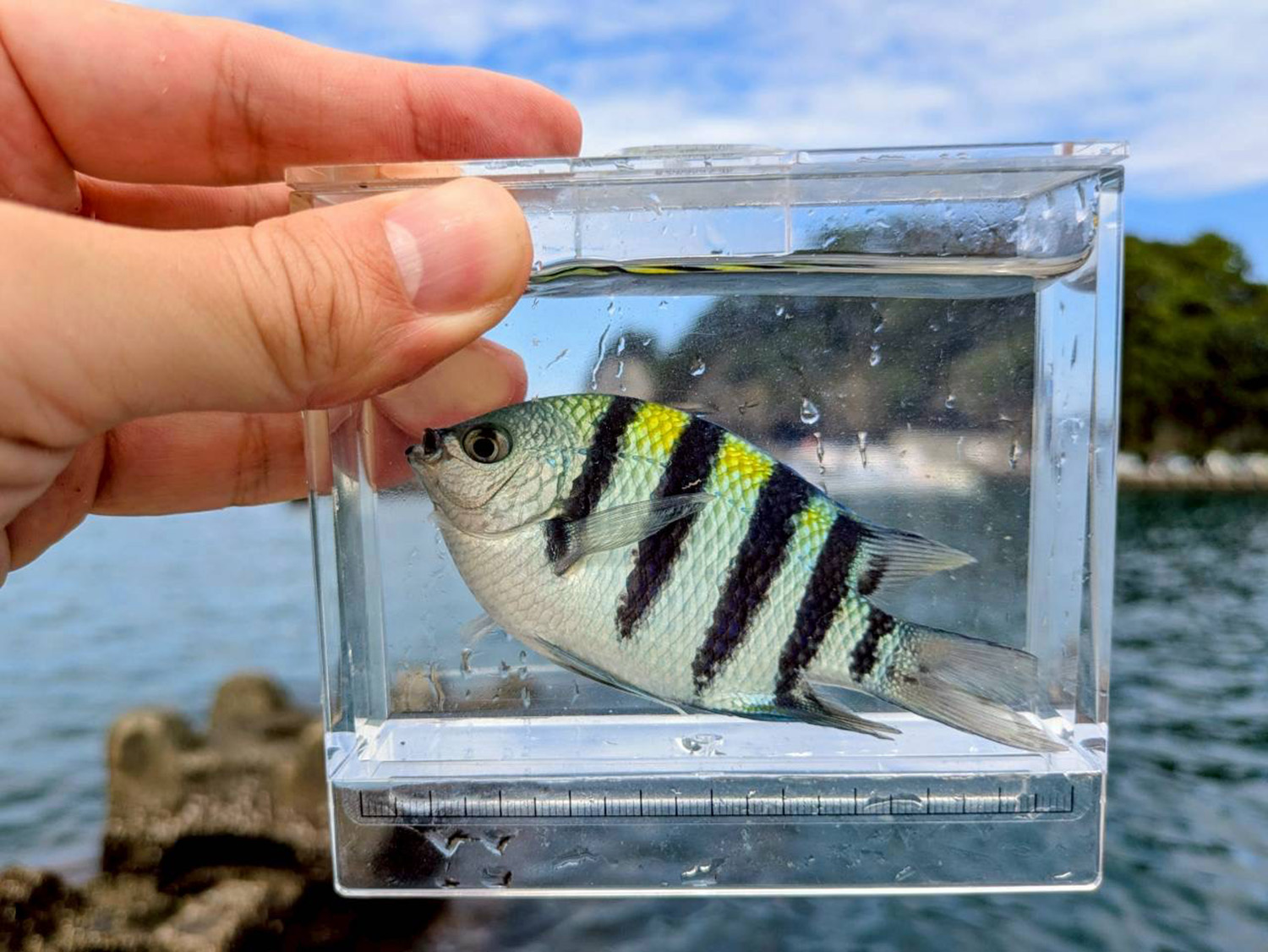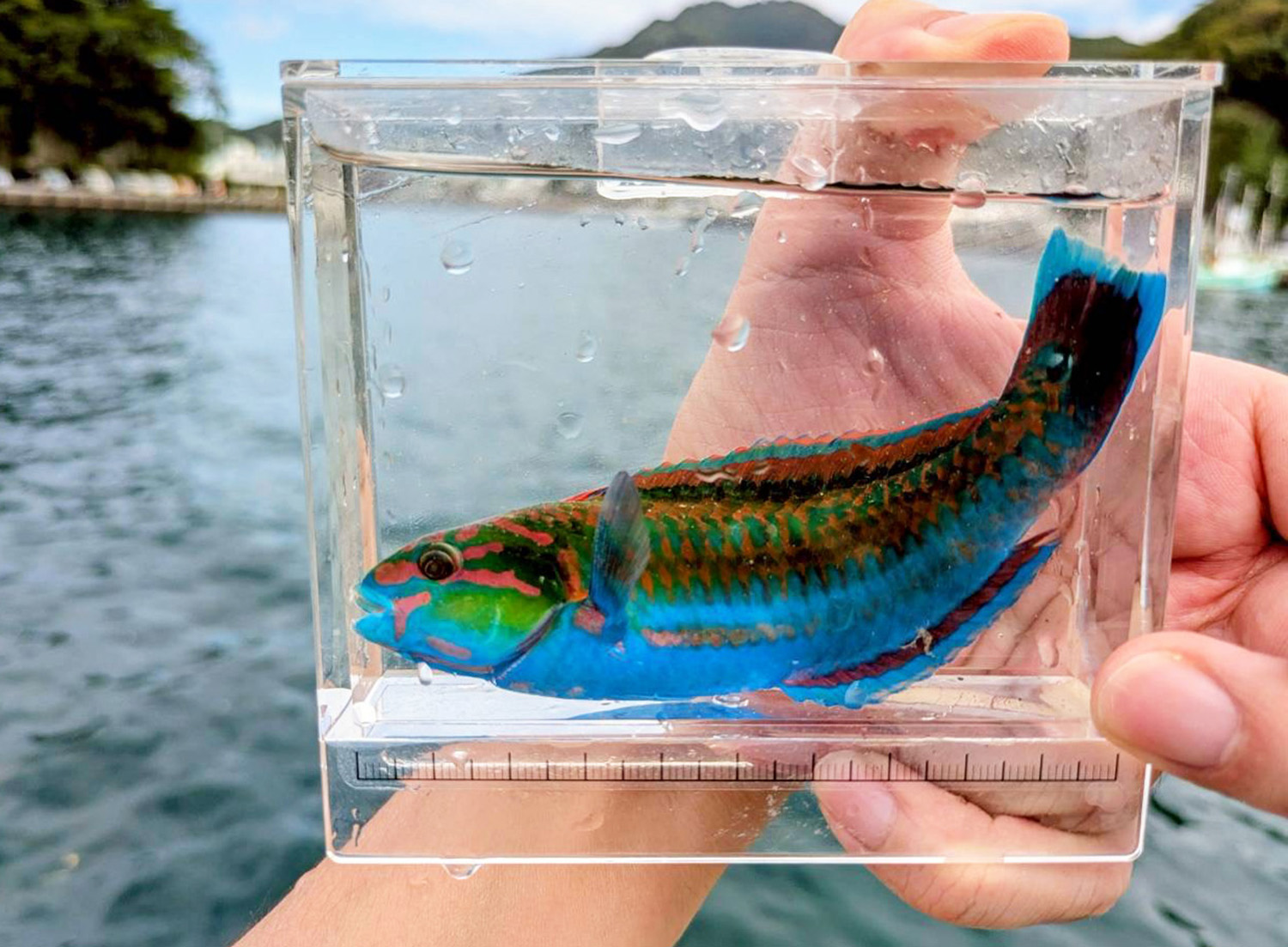 バケツから撮影用の薄い透明ケースに移し、ひとしきり眺める。魚の美しさを堪能してから、スマホやカメラで写真に残している。