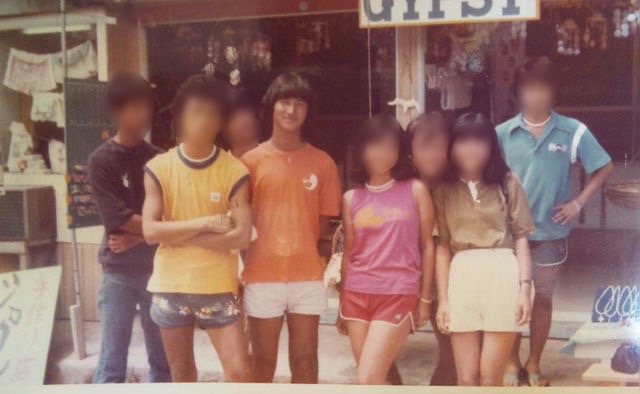 ・TV番組「オールナイトフジ」のMCも務めたレジェンド、ドジ井坂さんの茅ヶ崎〈コスミック〉。袖プリントもこの頃から見られるようになった。