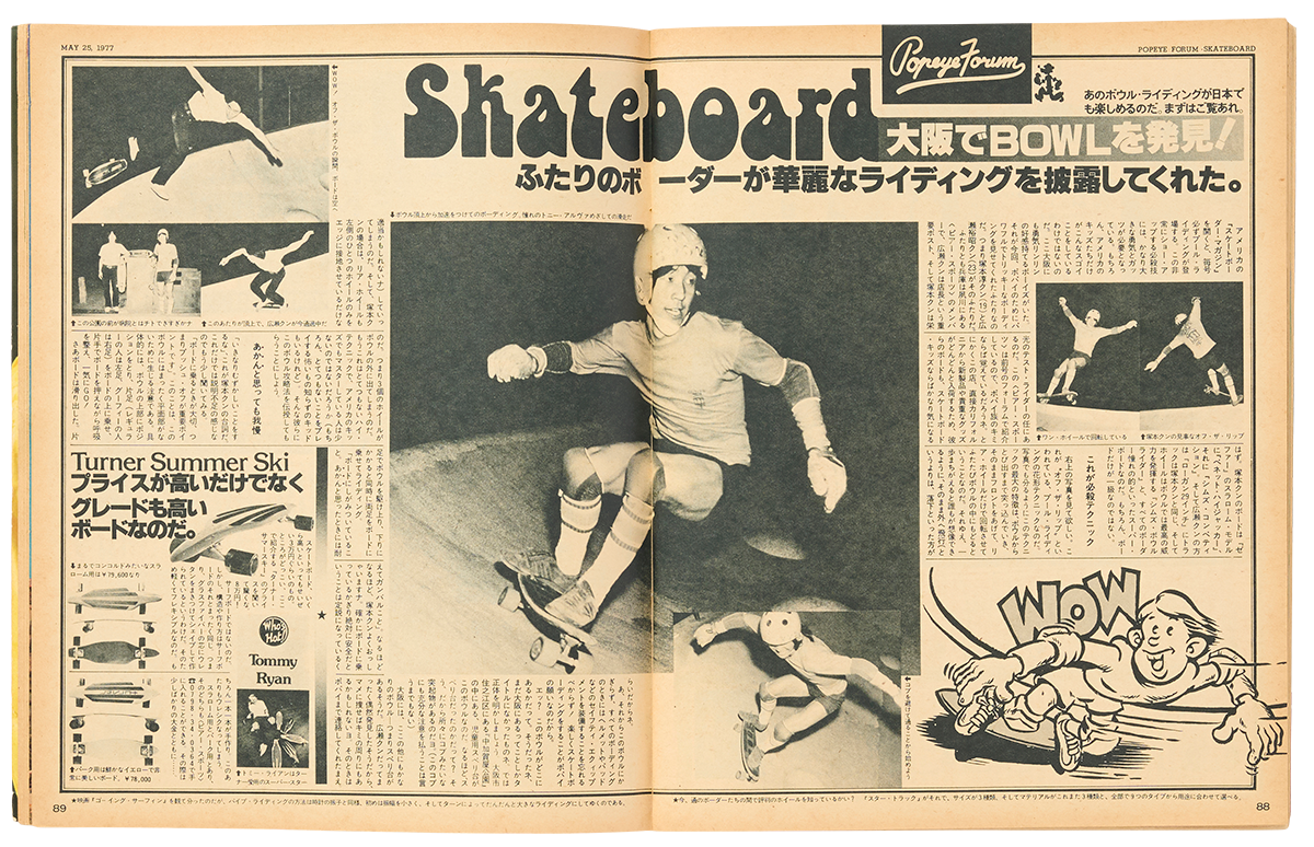 1977年「POPEYE」7号に登場する〈ピアスポーツ〉のスケーター。〈ゼファー〉のTシャツを着ている。
