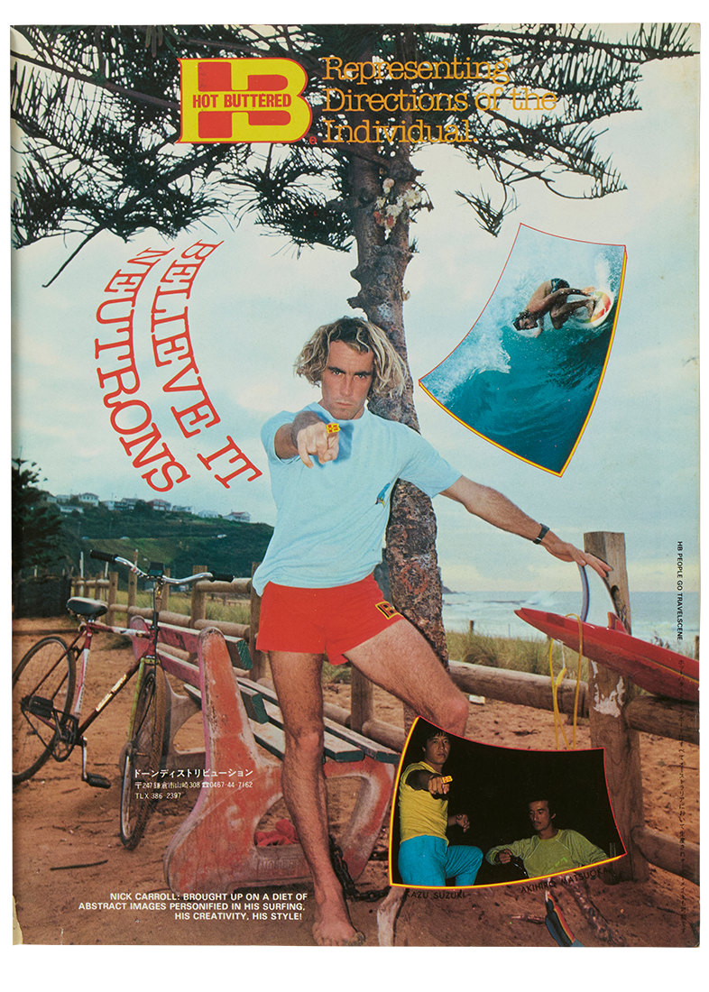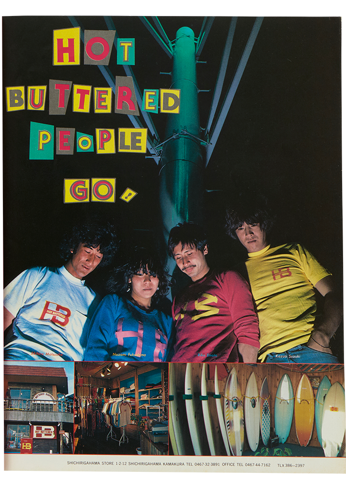 なんだかんだサーフィンの勢力はどう転んでも海外が強かった。カリフォルニアは〈ハンテン〉、ハワイは〈ライトニングボルト〉、オーストラリアには〈クイックシルバー〉がある。もちろん色々なショップがそれらを輸入して取り扱っていたが、日本では70年代後半になるとそれらのフラッグシップショップがオープンし始めた。ハワイ〈タウン&カントリー〉なんかはその代表格。通称“タウカン”は1971年にグレイグ・スギハラによって生まれたハワイのサーフブランドであるが、ワスレチック時代の若者には自由が丘の旗手店が真っ先に浮かぶ。アメリカンスタイルの店が生まれるだけでワクワクしたであろう70年代後期に、海の向こうの、いわば“本物”のブランドショップが上陸したとなれば、多くが頼るのも当然だ。また同じ頃に、鎌倉七里ガ浜に〈ホットバタード〉というオーストラリアのレーベルも上陸し、異彩を放っていたと聞く。インポートブランドの旗艦店なんて今では何の驚きも感じないが、そんなムーブメントも多くはこのワスレチック期から始まったのだ。