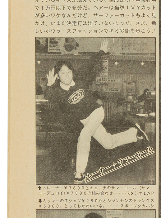 1979年「POPEYE」52号を開くと原宿〈クルーズ〉のスウェットを着ている女性を発見。