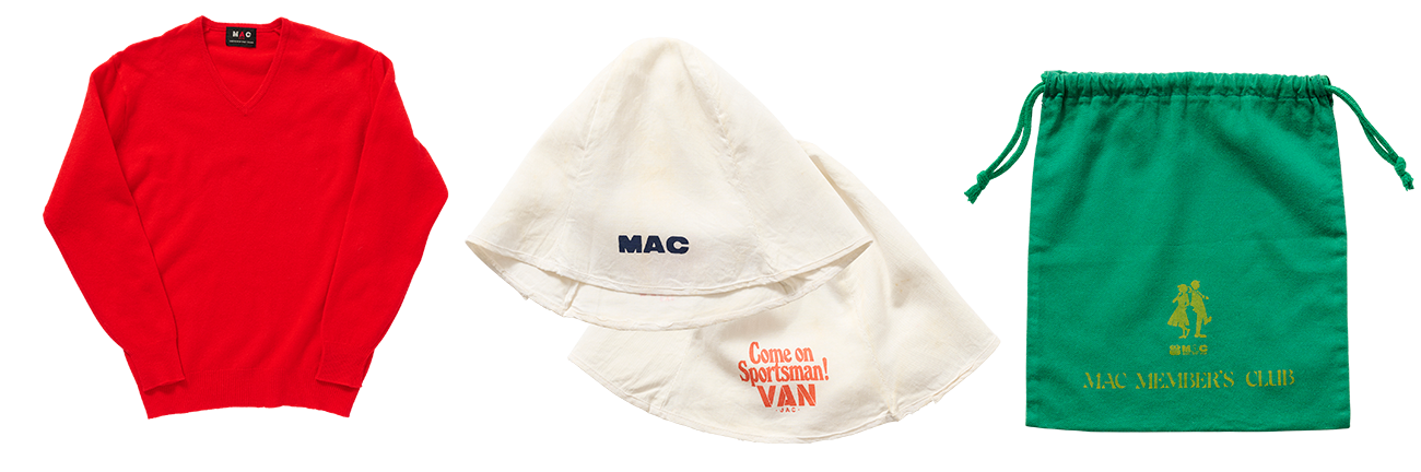 神戸〈MAC〉のオリジナルアイテムたち。現代表が「〈VAN〉とのダブルネームは東京の〈三峰〉なんかも同じ類で出していた」と教えてくれた。店舗の資料や写真がほとんど残っていないのは、地震の影響もあるけど、当時売れに売れて、店の内装を2年に一度くらい改装していたかららしい。