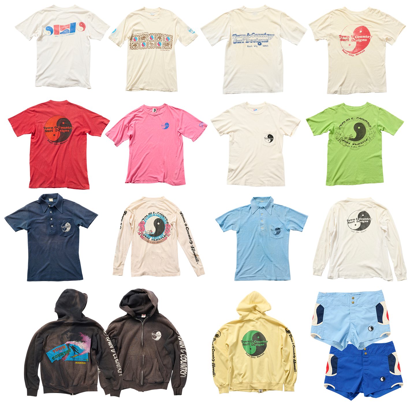 陰&陽のロゴで知られる、今も見かけることのできる〈タウン&カントリー〉だけど、当時のものはオーラが違う。ラリー・バートルマンに、グレン・ミナミ、デニス・パングに、デーン・ケアロハなど、名うてのサーファーが勢ぞろいでシグネチャーものに大層憧れた。