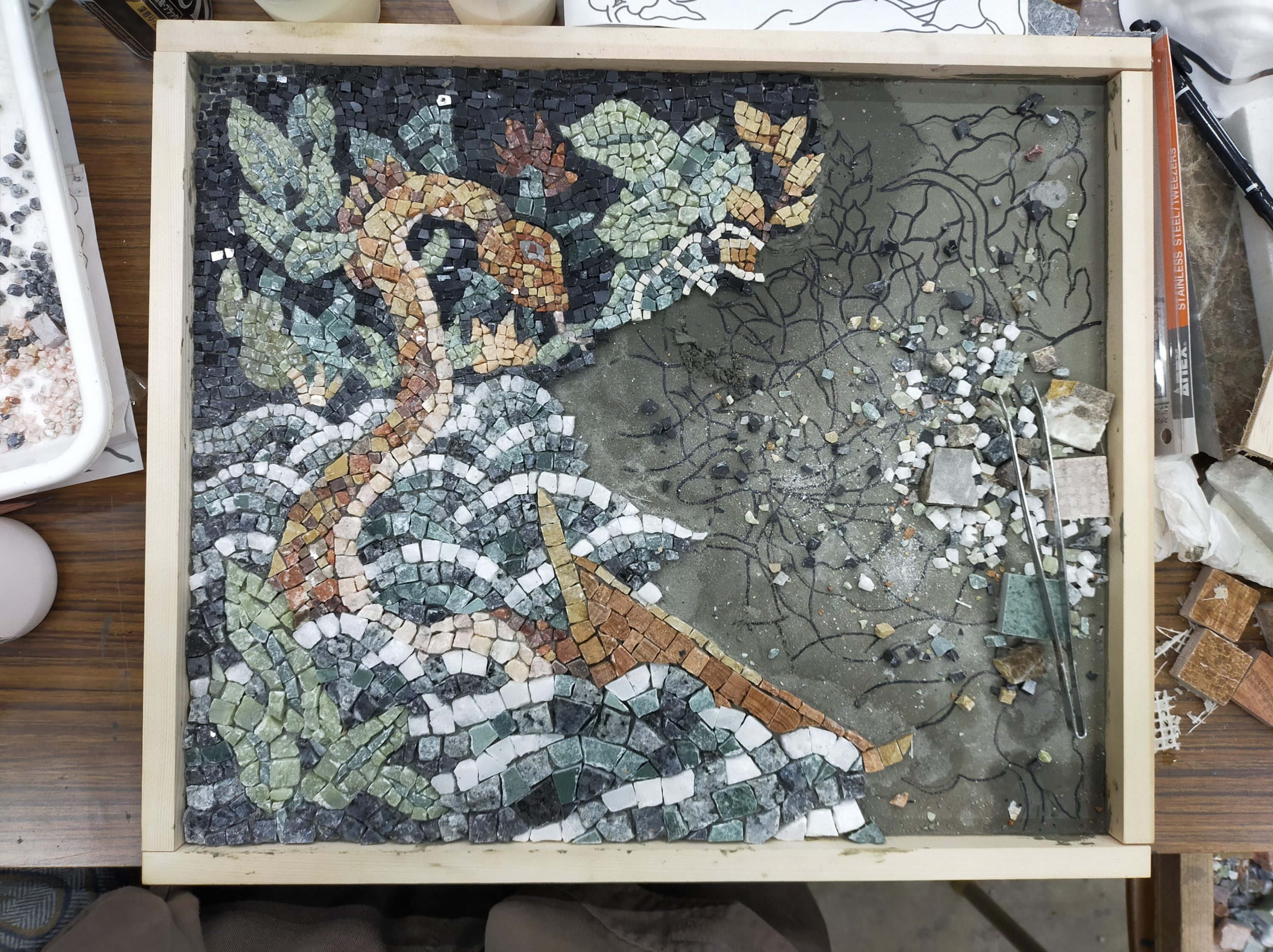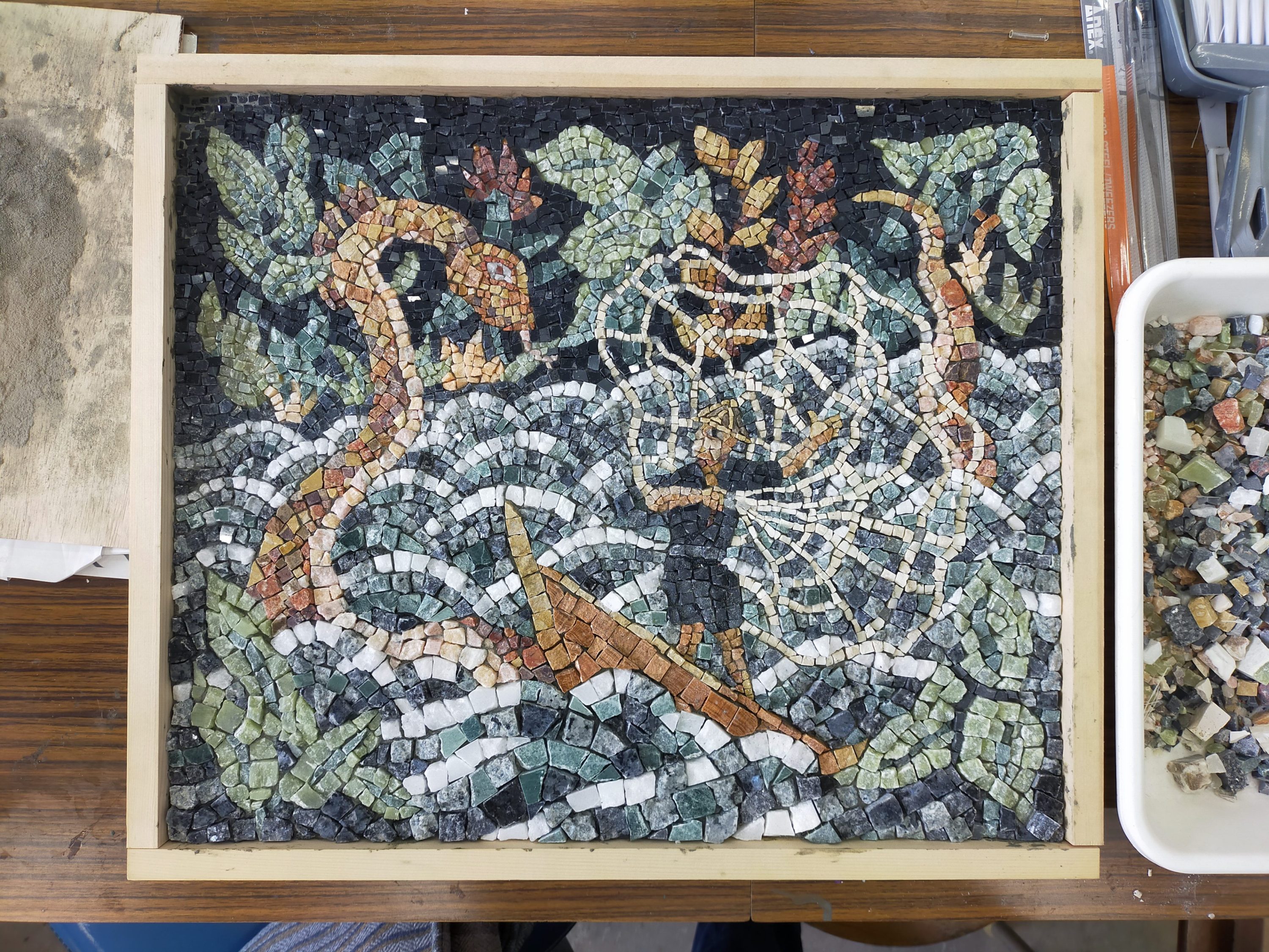 工程のシンプルさとは裏腹に、とても奥深い世界がモザイクの技法なのです。