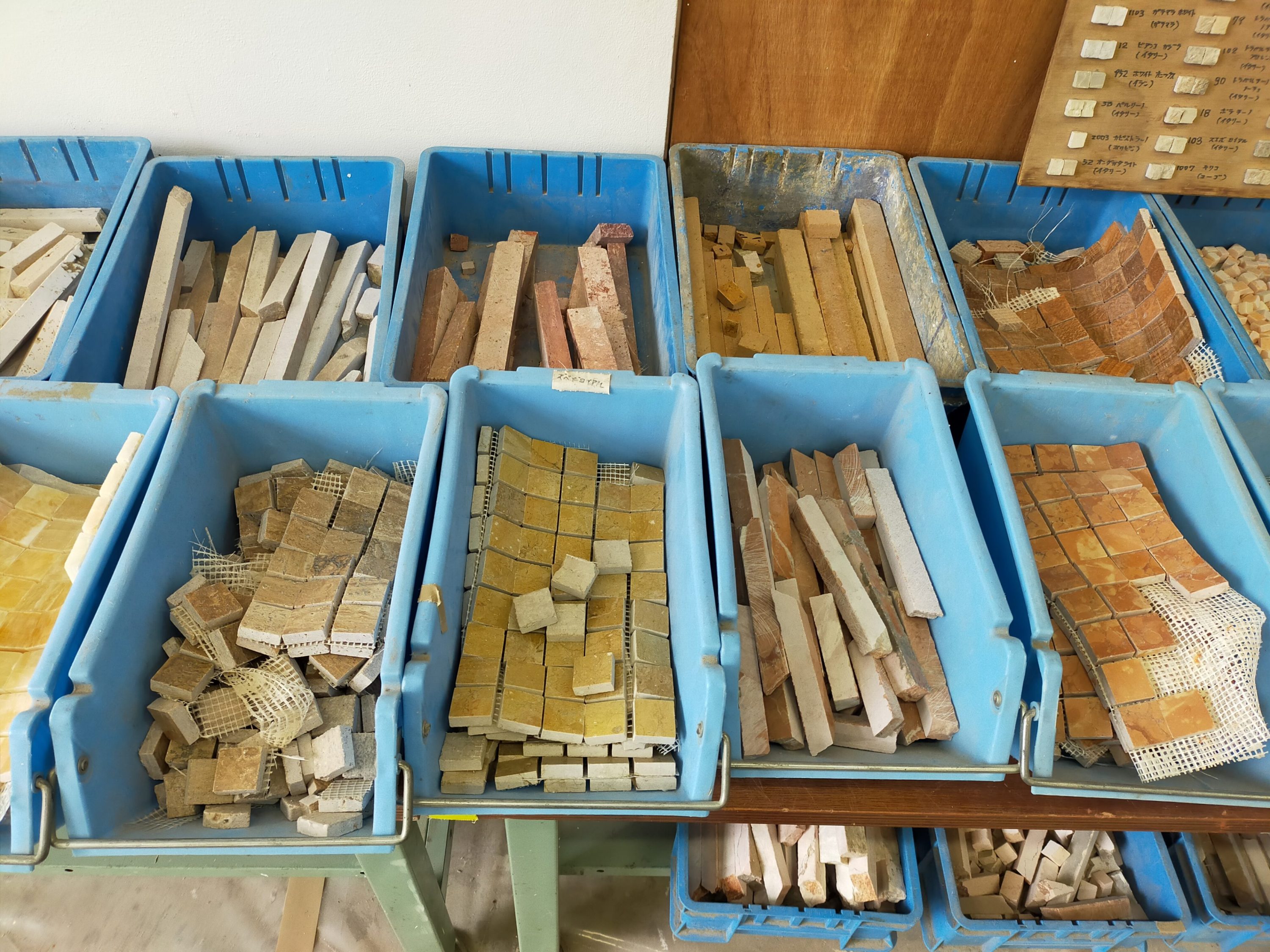 石を加工し立方体にしたものを「テッセラ」といいます。意味はまさしく「小さな立方体」。絵を描くにはたくさんの色味のテッセラを準備しなくてはなりません。