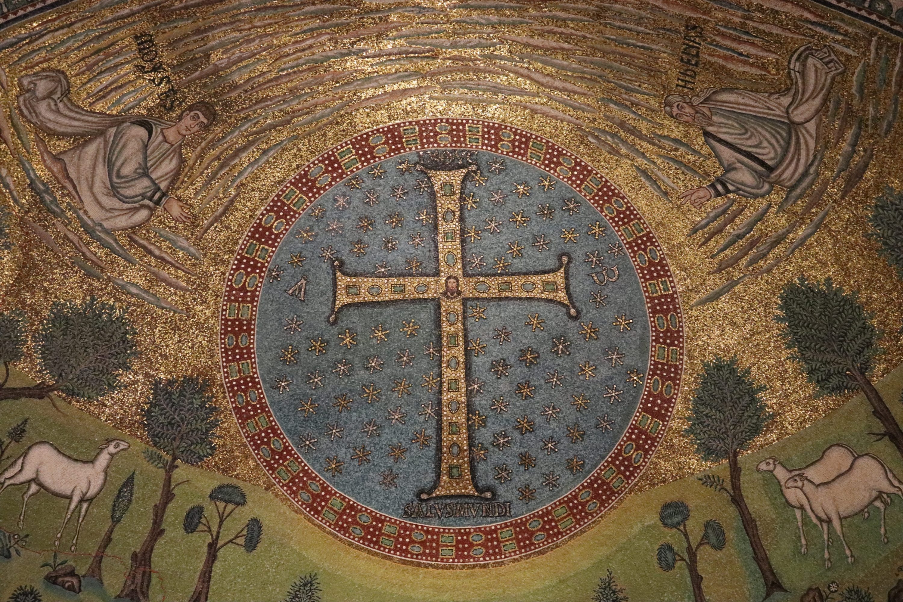 あえて角度をバラバラに貼って、テッセラの表面を凹凸にすることで、光が当たった際に乱反射して、キラキラきらめく壁面となるのです。モザイクで飾られた聖堂に入ると、時刻や見る角度で見え方が変化していきます。この手法はビザンチン帝国時代に盛んに用いられ、キリスト教世界の神秘的な光を象徴的に表現していました。