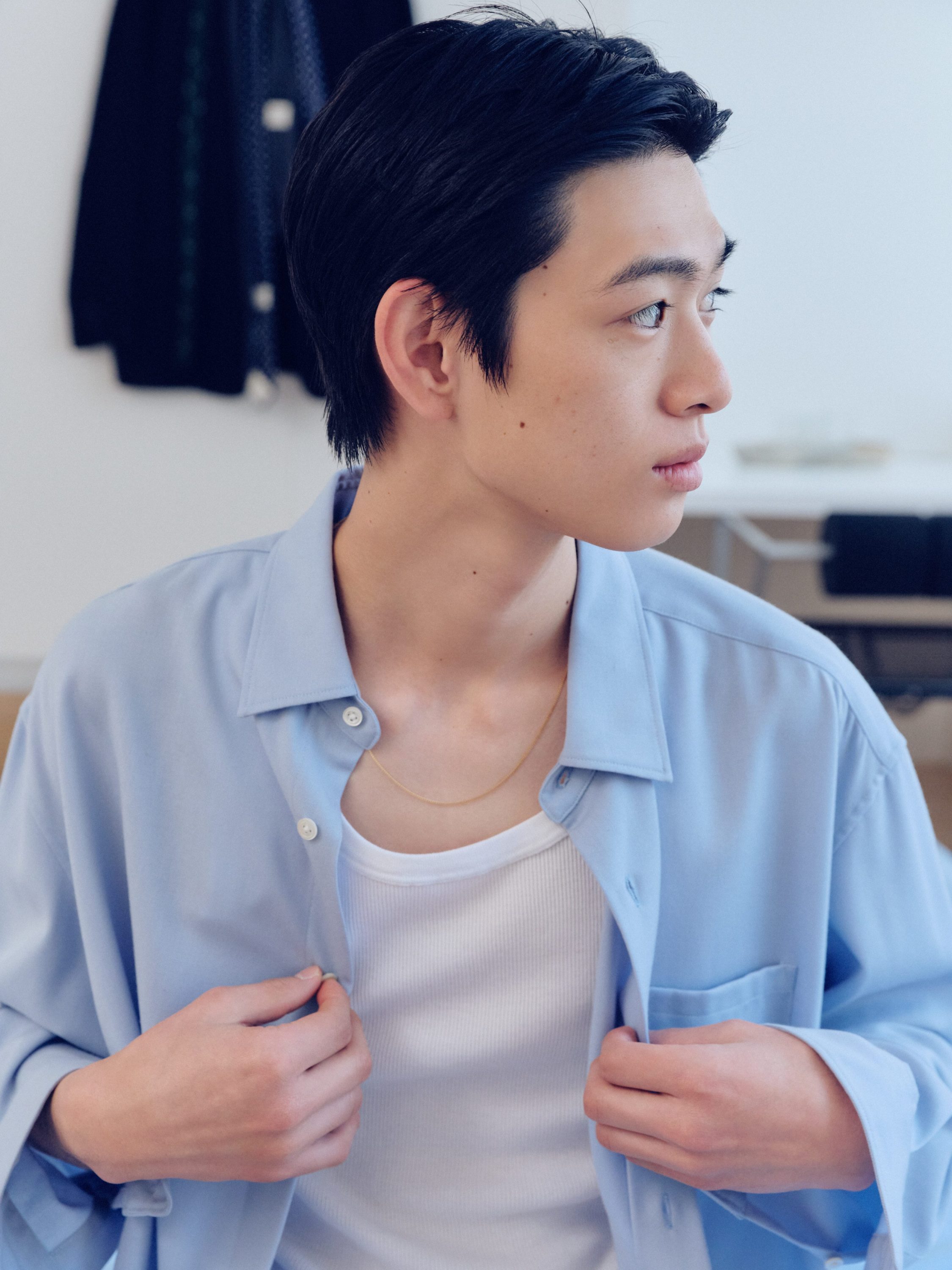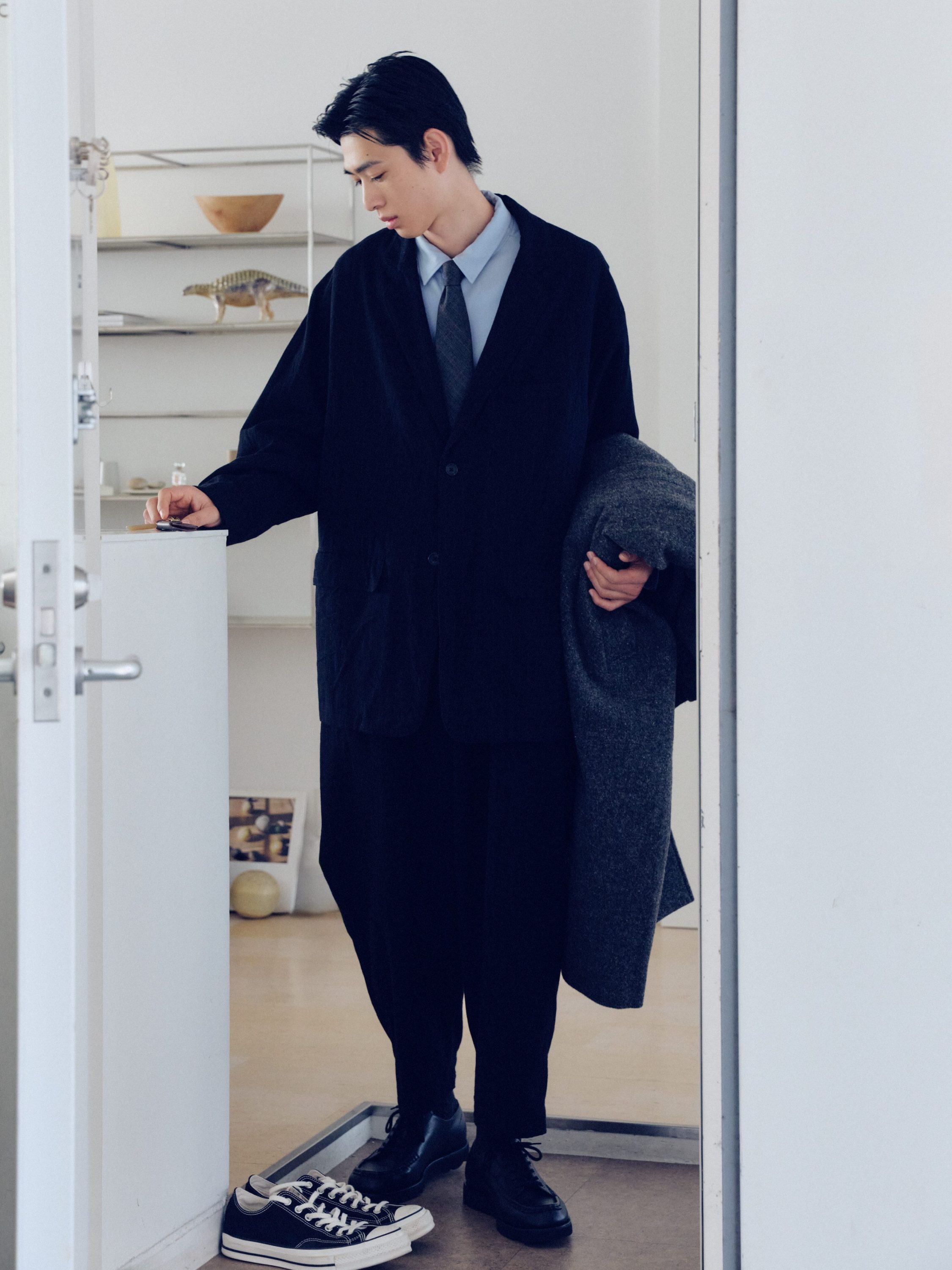 ウールコート¥107,800(ヨーコサカモト☎03・5430・9577) ウールコットンジャケット¥115,500 共地のパンツ¥77,550(ともにポーター クラシック/ポーター クラシック 銀座☎ 03・3571・0099) カシミヤレギュラーカラーシャツ¥154,000(ボーディ/アルファ ブランド コンサルティング☎03・6910・5431) ウールタイ¥17,600(メゾン エ ヴォヤージュ/メゾン エ ヴォヤージュ 麻布台ヒルズ店☎03・5797・8515) レザーシューズ¥42,900(マルボー/オーセンティック・シュー&コー☎03・5808・7515)