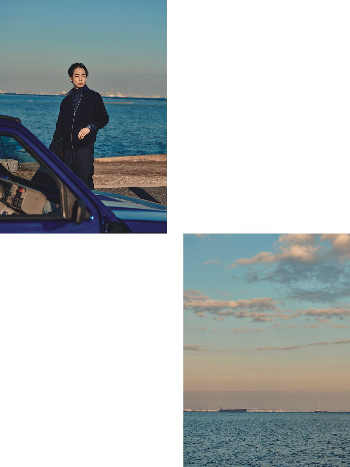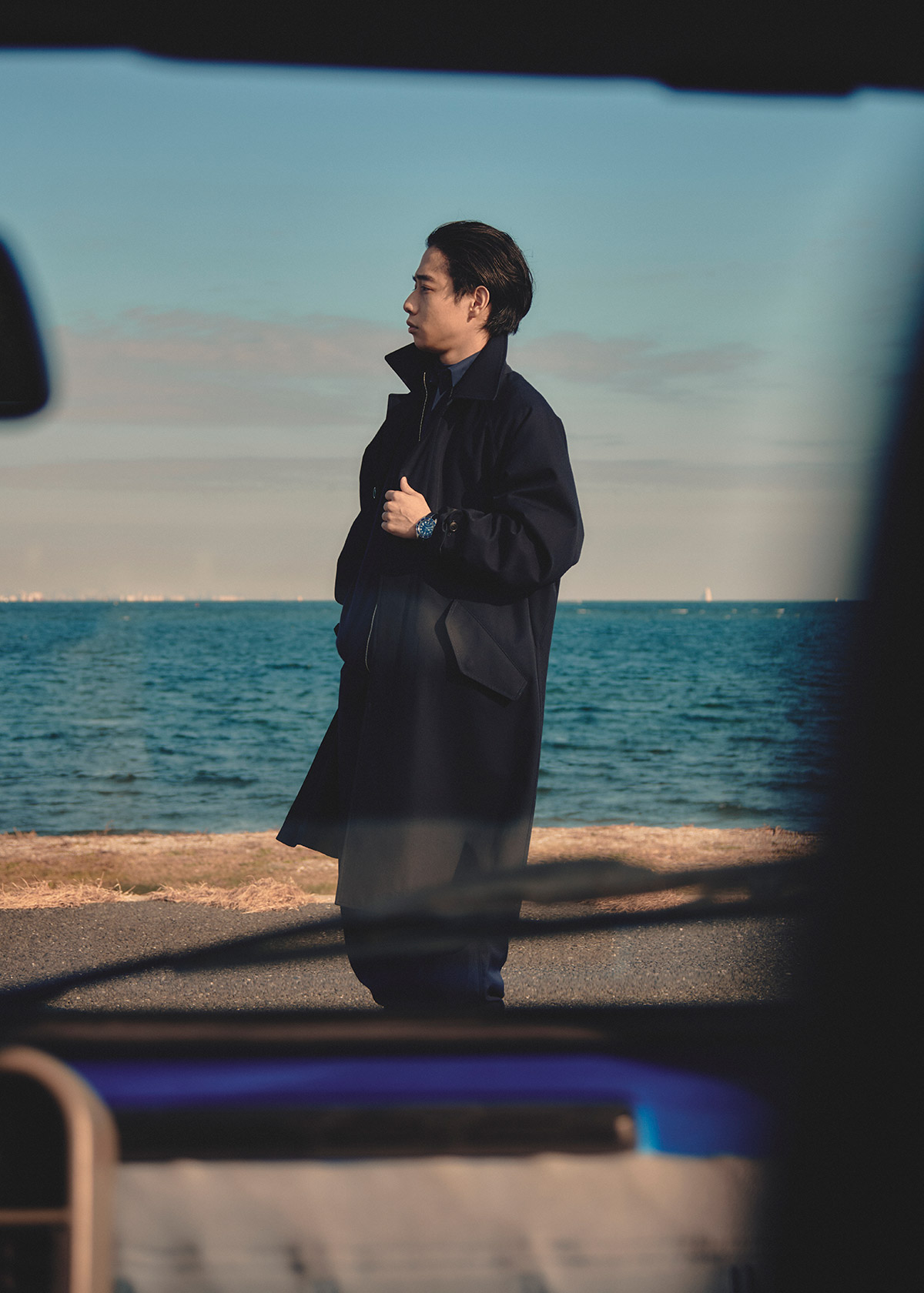 ステンカラーコート¥110,000(メゾン エ ヴォヤージュ/メゾン エ ヴォヤージュ 麻布台ヒルズ店☎ 03・5797・8515) ベビーカシミヤのフルジップニット¥154,000(ポータークラシック/ポータークラッシック 銀座☎03・3571・0099) コットンポリエステルの開襟シャツ¥26,400 ウールポリエステルのギャバパンツ¥58,300(ともにサンリミット/サンリミット 上野店☎ 03・5826・4791) ウルトラファインメリノのタートルネックセーター¥31,240(サンスペル/サンスペル カスタマーサービス☎050・3562・1860) その他は私物
