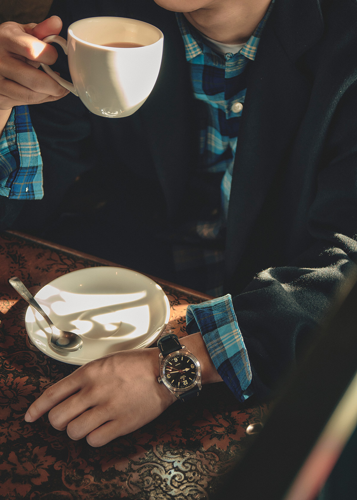 「普段はあまり時計をつけないんです。でも、つけるときは最後の装備品という感覚。僕にとって時計は、スーツにネクタイを締めるような紳士としての最後のピースなんです。〈チューダー〉の時計は、洗練されたデザインで、まさに背筋が伸びる感じですね」